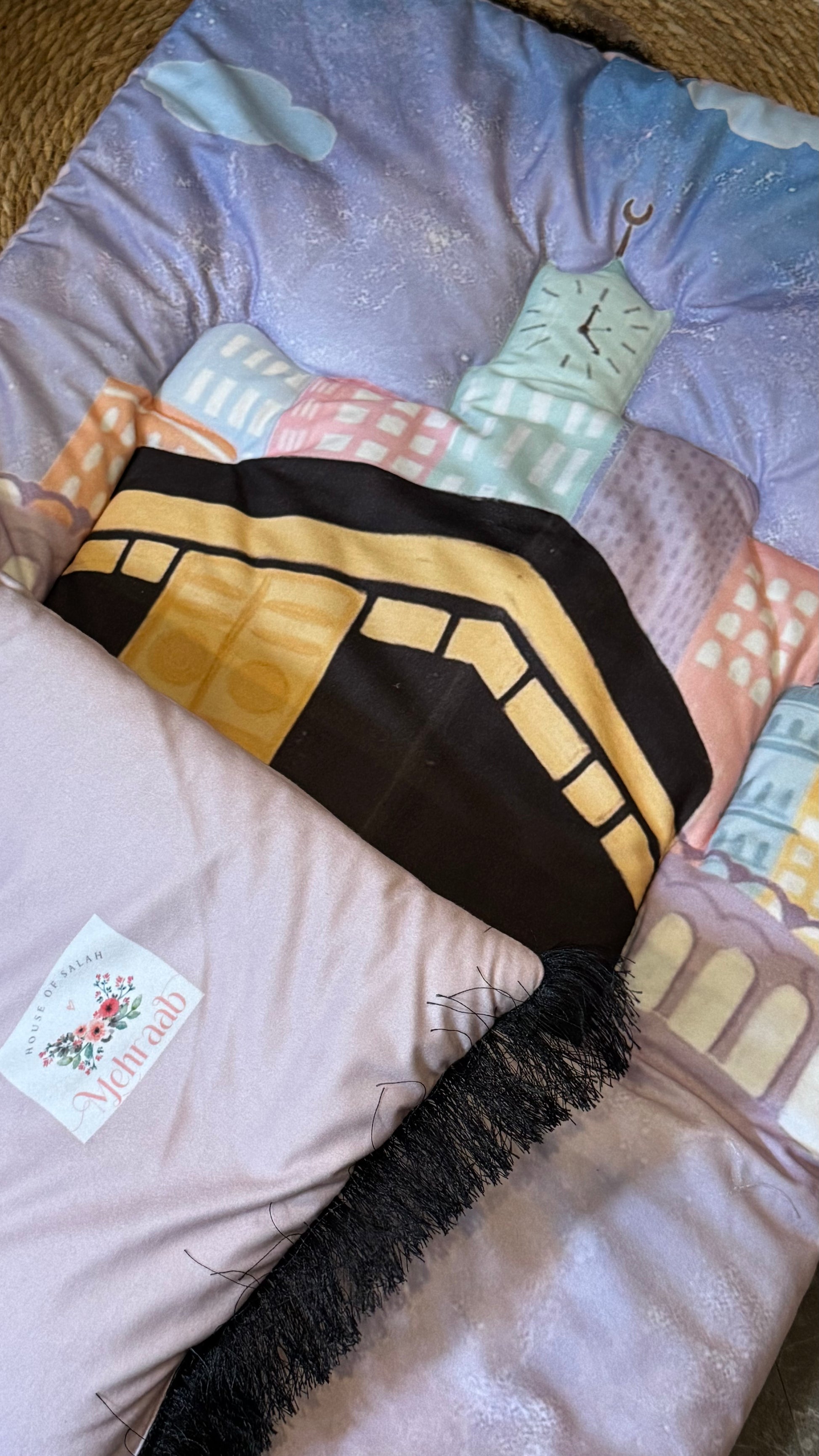 Made with premium imported Korean velvet, this prayer mat offers a soft and luxurious feel. With 300 grams of polyester filling and high-quality stitching, it’s built to last and provides extra comfort during Salah. The colorful, child-friendly design makes prayer time engaging and special for children up to 15 years old.