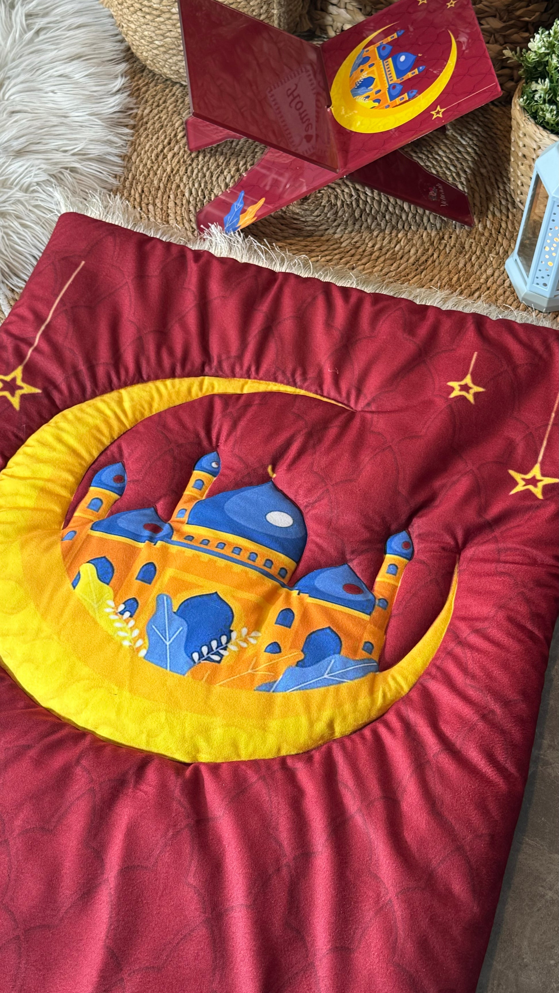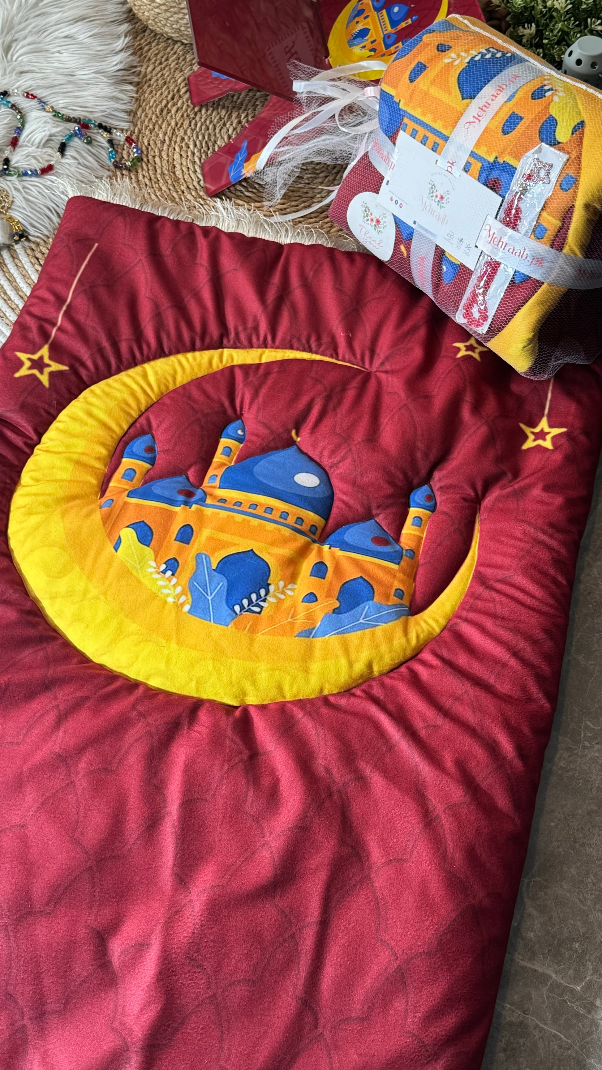 Made with premium imported Korean velvet, this prayer mat offers a soft and luxurious feel. With 300 grams of polyester filling and high-quality stitching, it’s built to last and provides extra comfort during Salah. The colorful, child-friendly design makes prayer time engaging and special for children up to 15 years old.