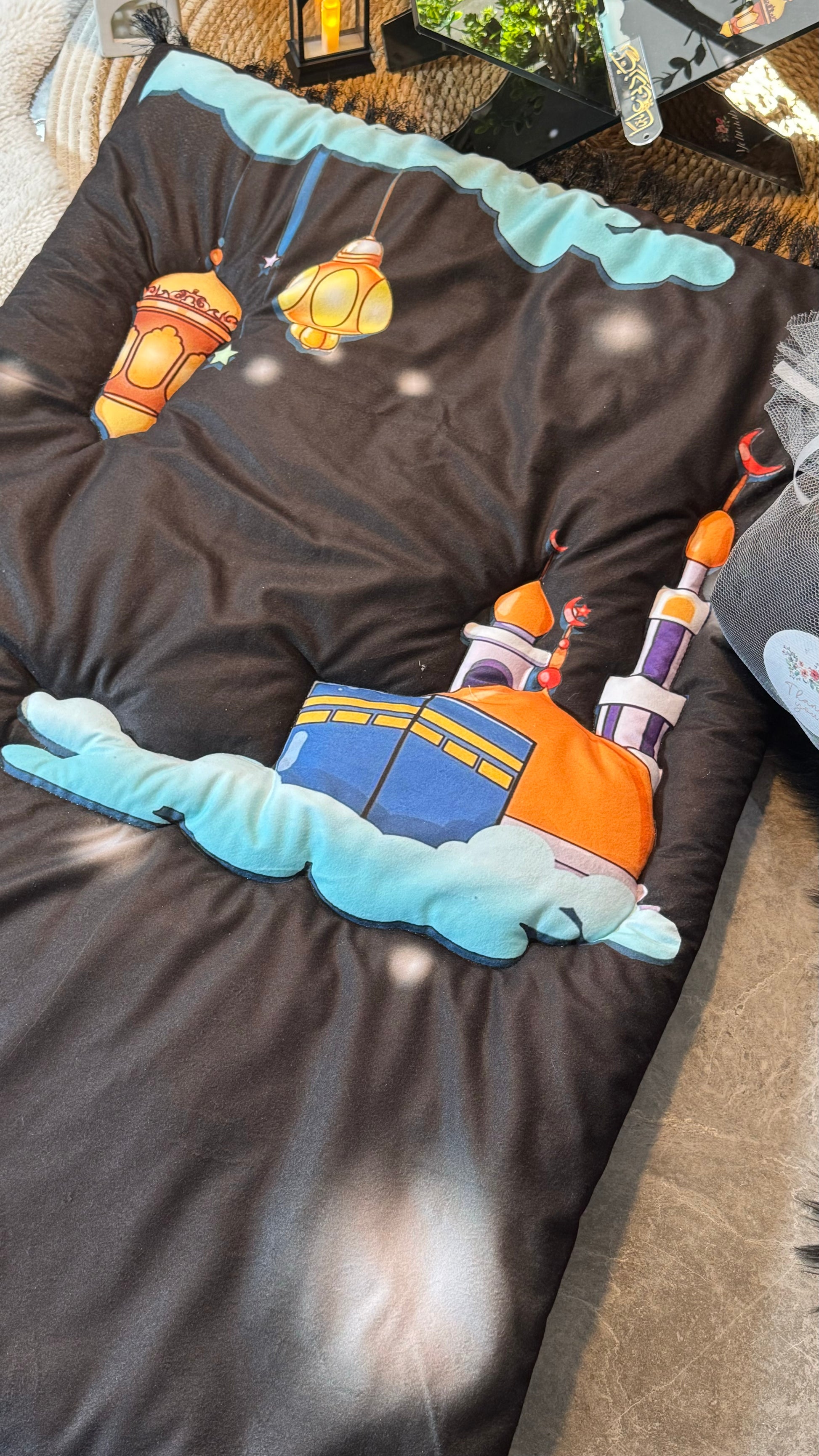 Made with premium imported Korean velvet, this prayer mat offers a soft and luxurious feel. With 300 grams of polyester filling and high-quality stitching, it’s built to last and provides extra comfort during Salah. The colorful, child-friendly design makes prayer time engaging and special for children up to 15 years old.