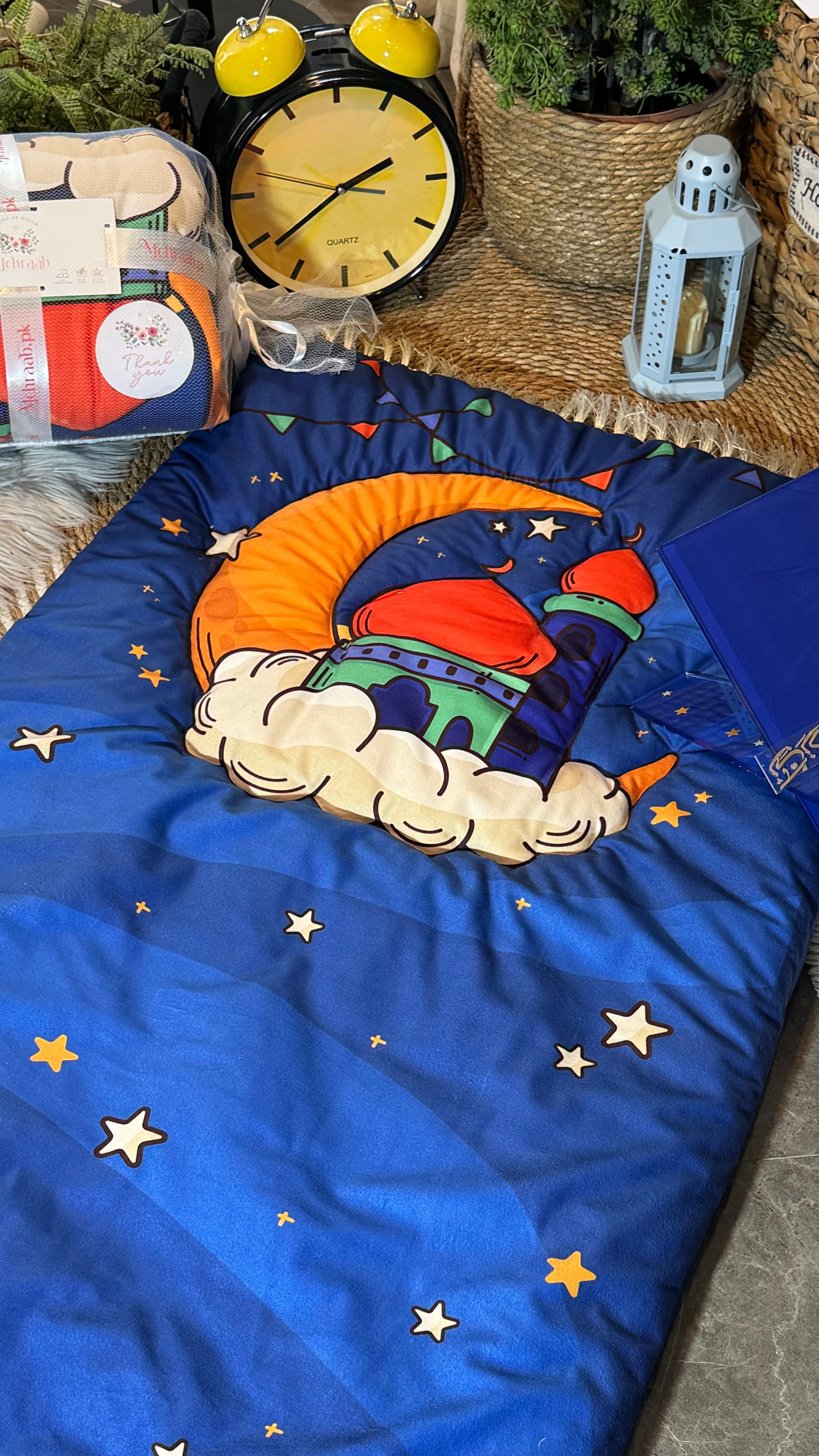 Made with premium imported Korean velvet, this prayer mat offers a soft and luxurious feel. With 300 grams of polyester filling and high-quality stitching, it’s built to last and provides extra comfort during Salah. The colorful, child-friendly design makes prayer time engaging and special for children up to 15 years old.