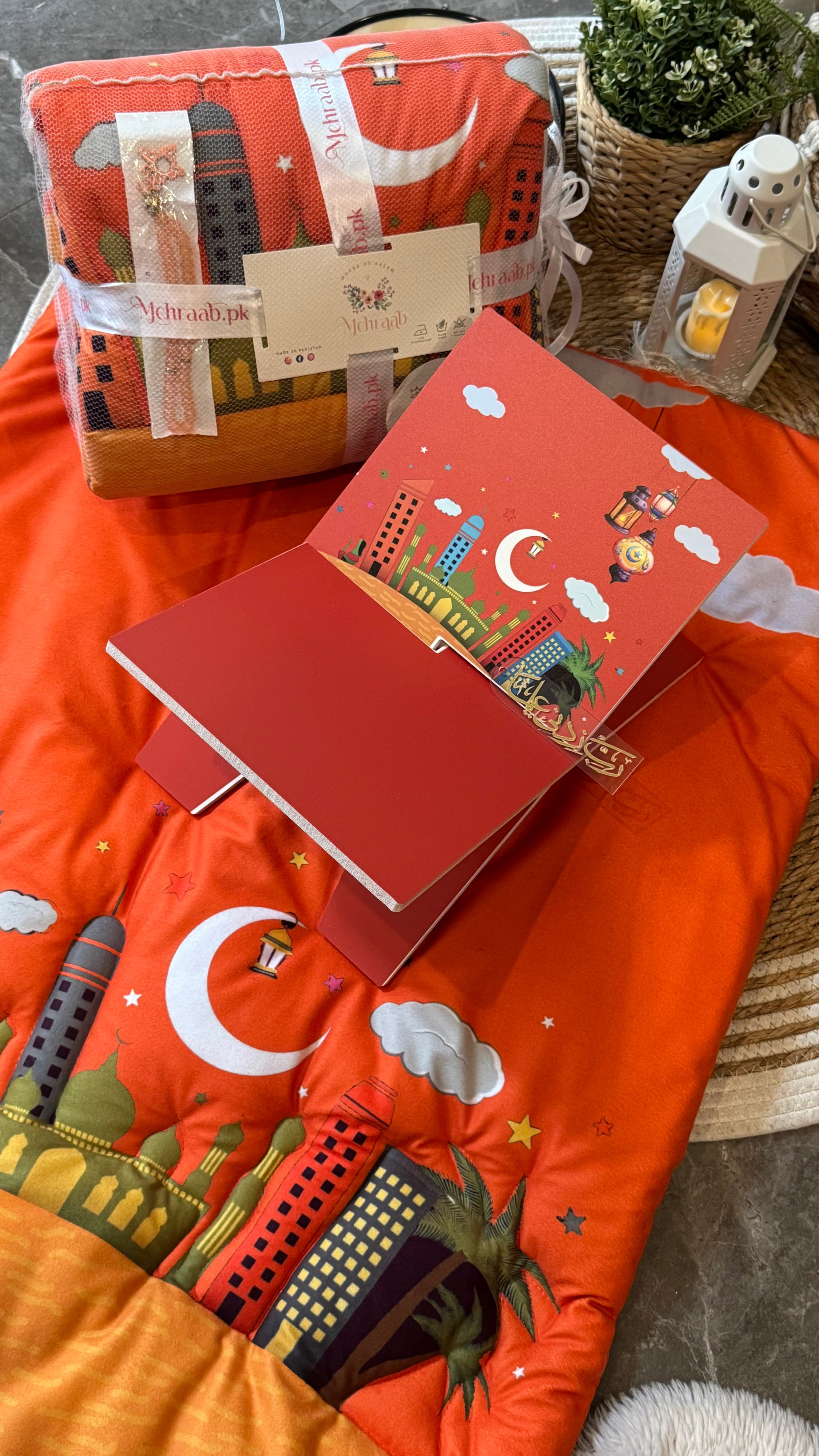 Crafted from sturdy PVC material, this durable Quran Rehal is lightweight yet solid — far superior to regular plastic stands. It provides a strong base for Quran recitation and has a beautiful, clean look that complements the bundle perfectly.