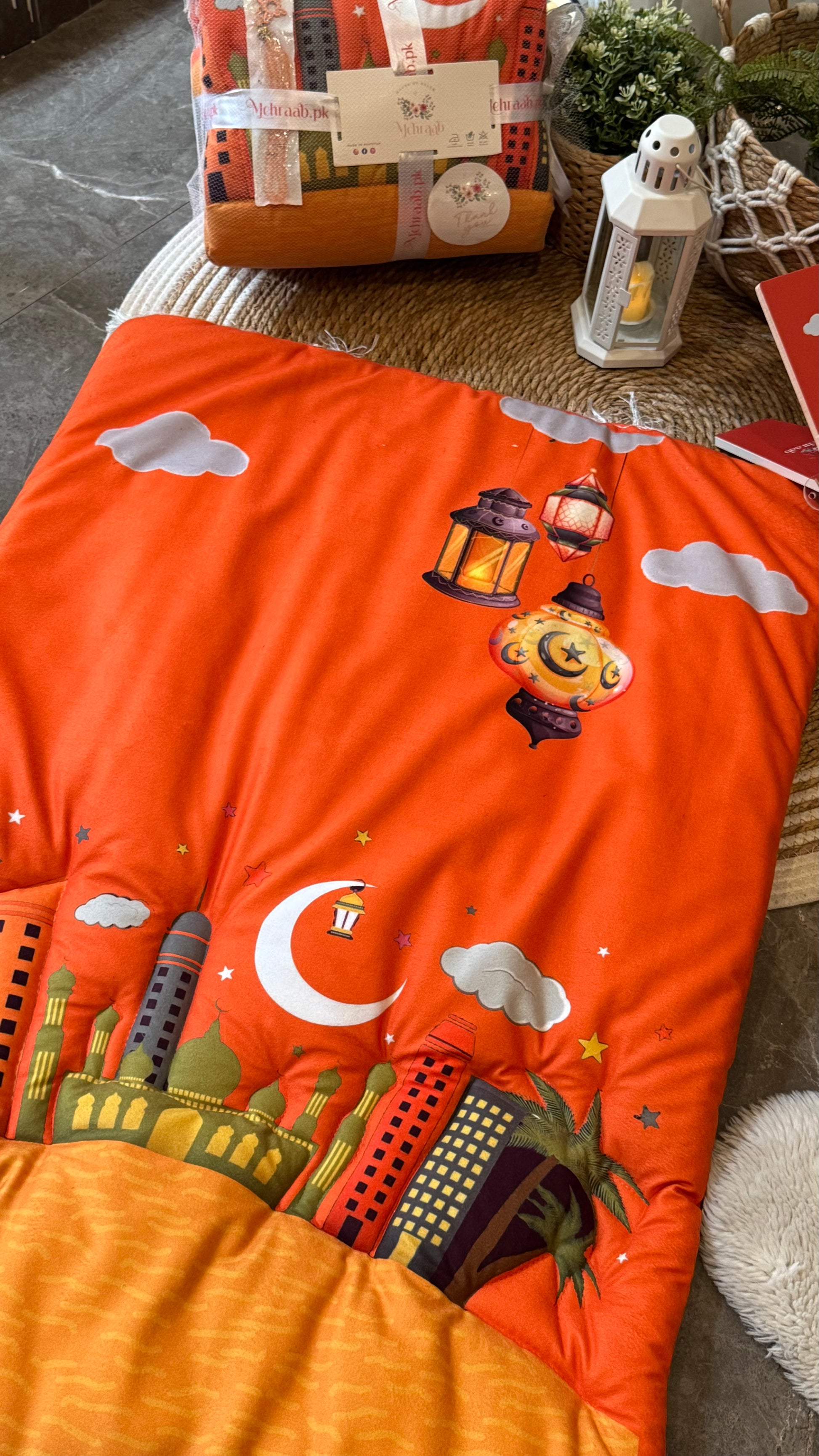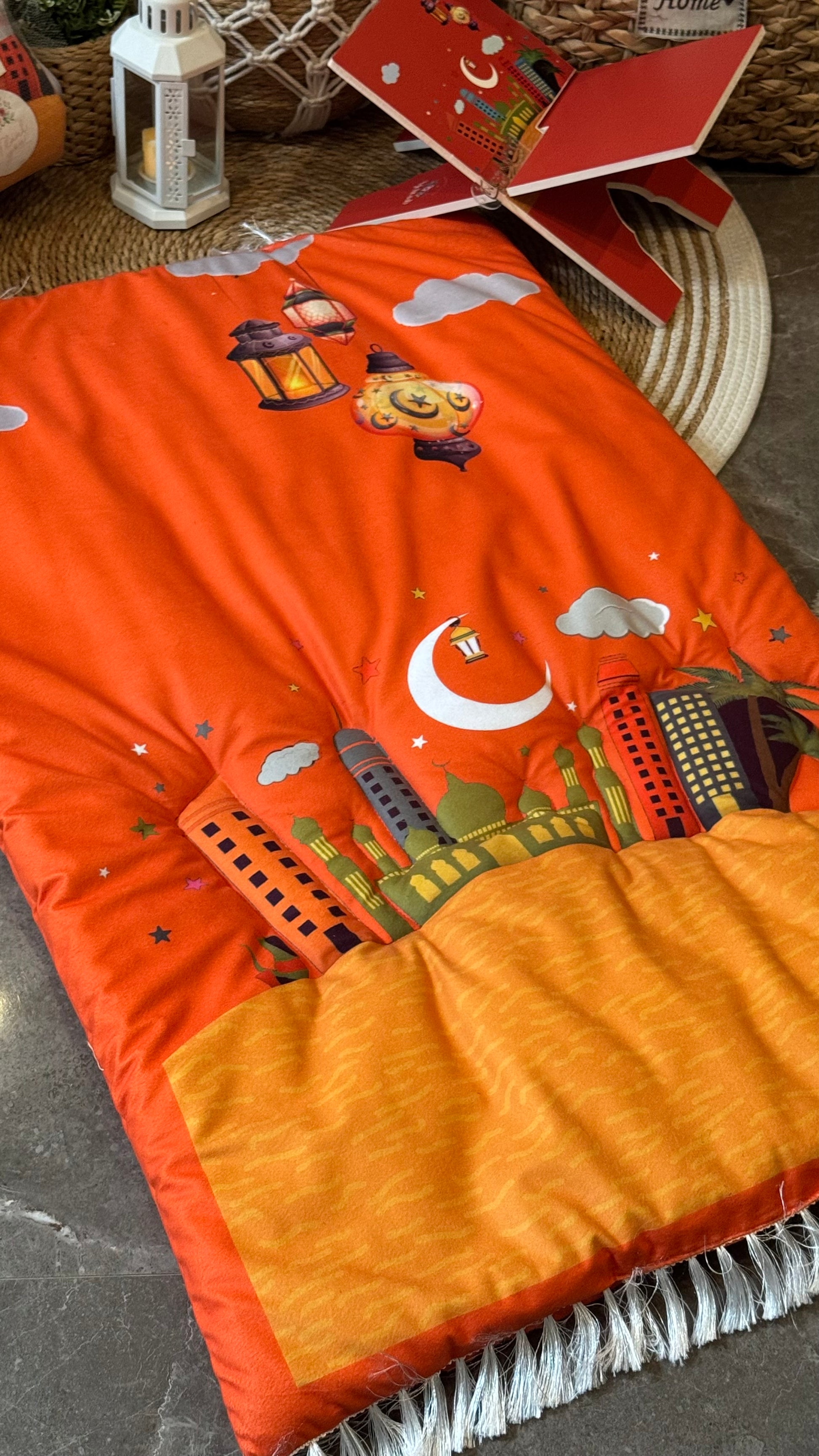 Made with premium imported Korean velvet, this prayer mat offers a soft and luxurious feel. With 300 grams of polyester filling and high-quality stitching, it’s built to last and provides extra comfort during Salah. The colorful, child-friendly design makes prayer time engaging and special for children up to 15 years old.