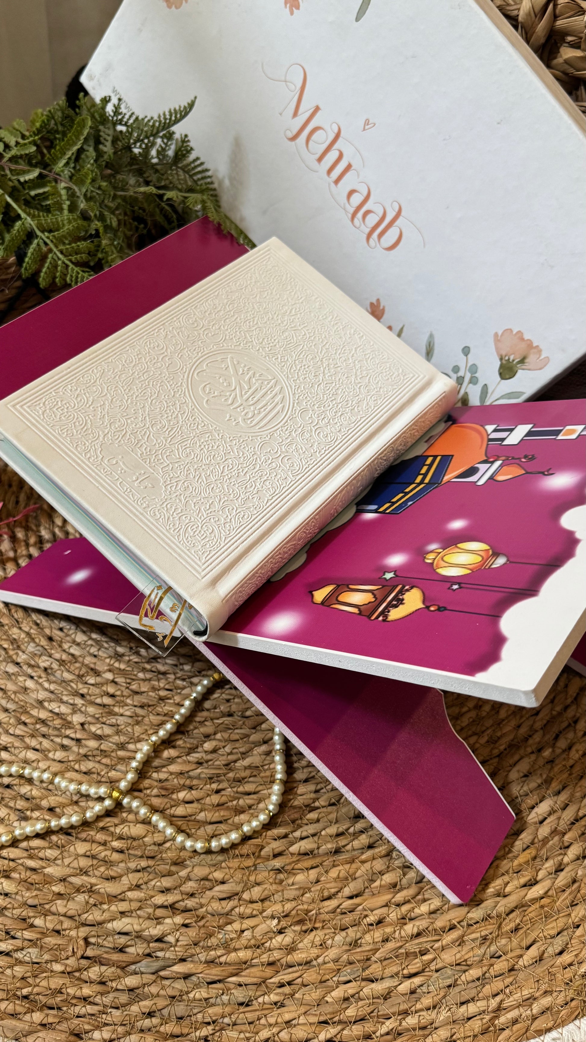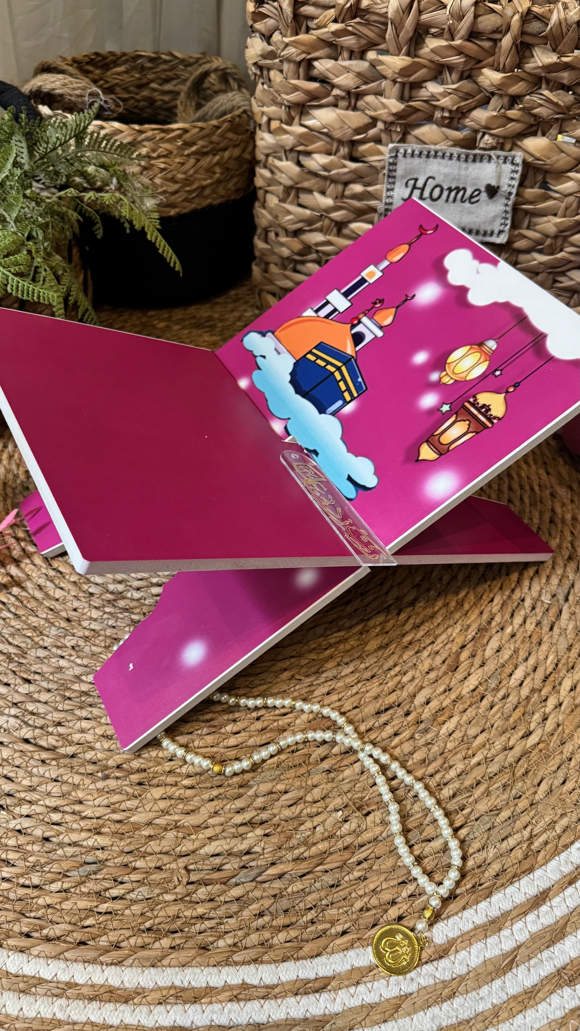Crafted from sturdy PVC material, this durable Quran Rehal is lightweight yet solid — far superior to regular plastic stands. It provides a strong base for Quran recitation and has a beautiful, clean look that complements the bundle perfectly.