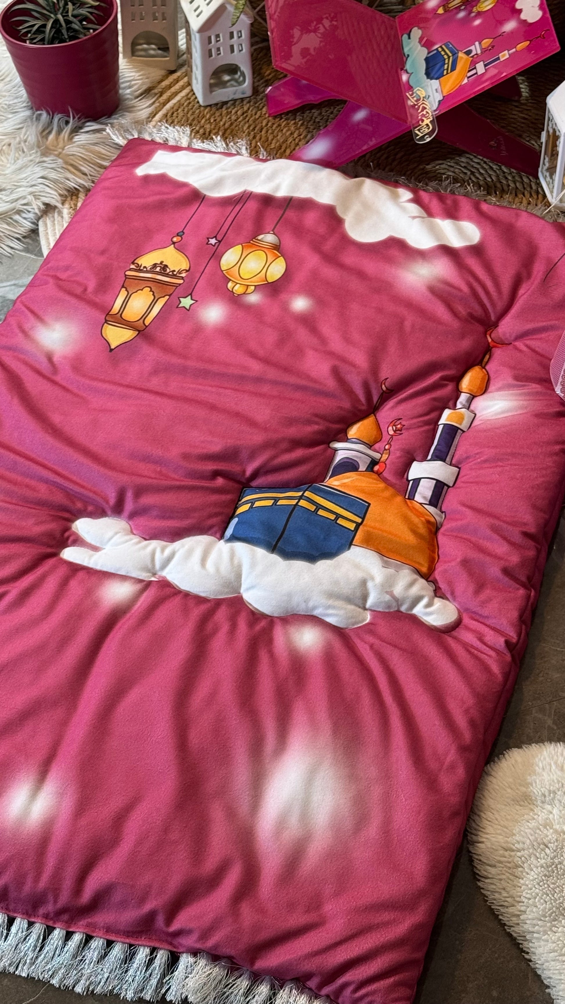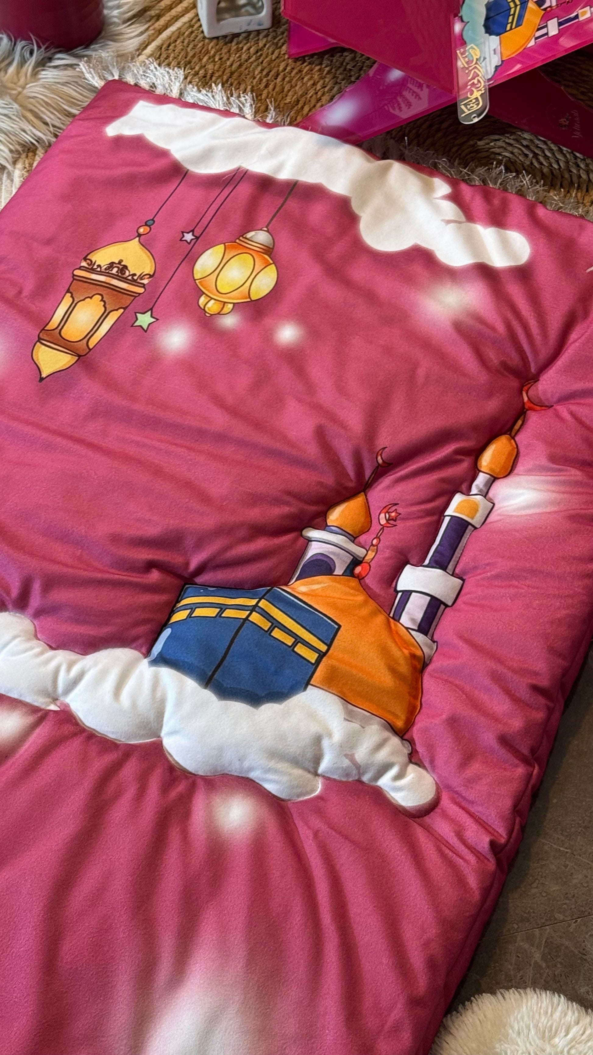 Made with premium imported Korean velvet, this prayer mat offers a soft and luxurious feel. With 300 grams of polyester filling and high-quality stitching, it’s built to last and provides extra comfort during Salah. The colorful, child-friendly design makes prayer time engaging and special for children up to 15 years old.