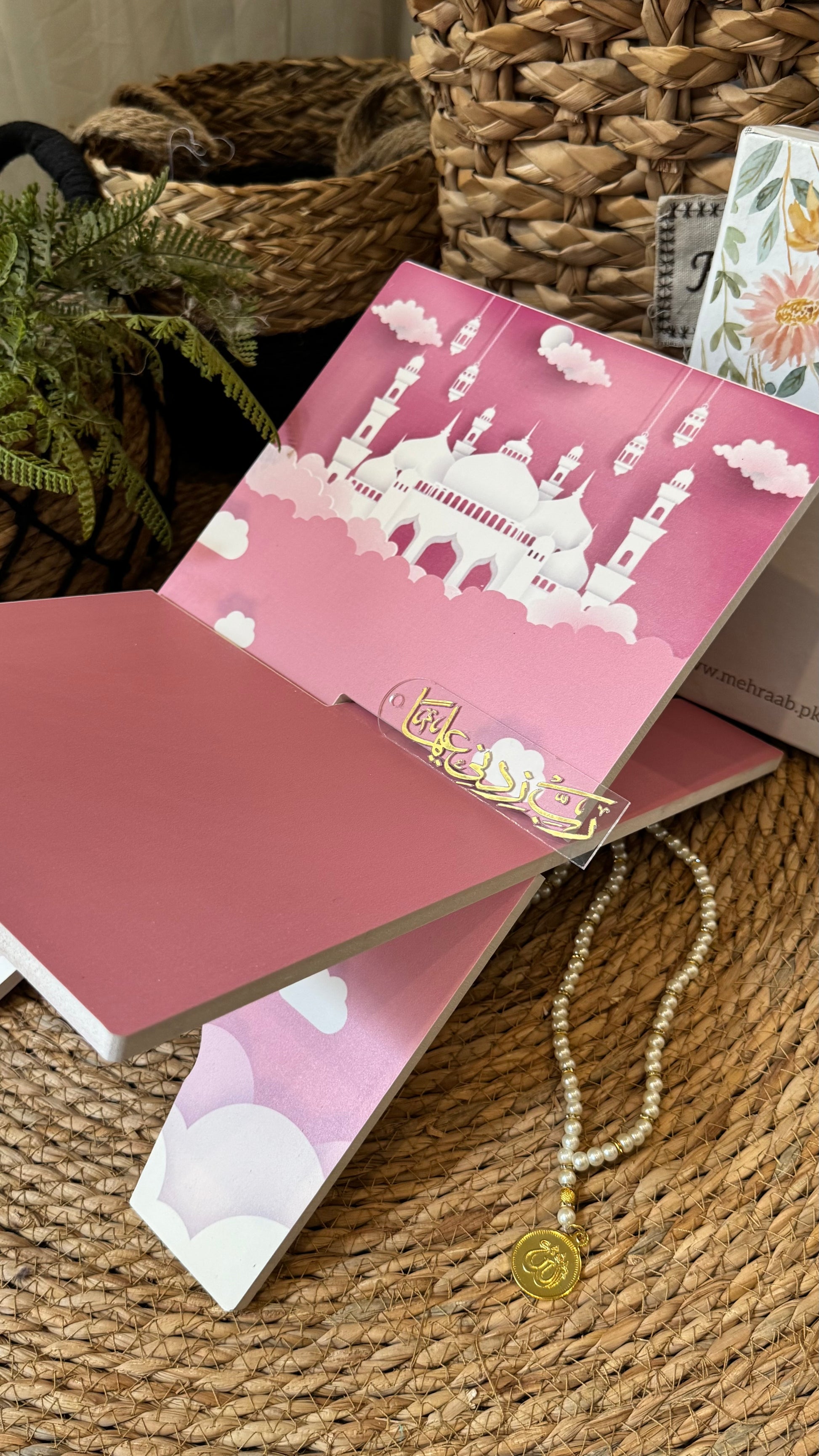 Crafted from sturdy PVC material, this durable Quran Rehal is lightweight yet solid — far superior to regular plastic stands. It provides a strong base for Quran recitation and has a beautiful, clean look that complements the bundle perfectly.