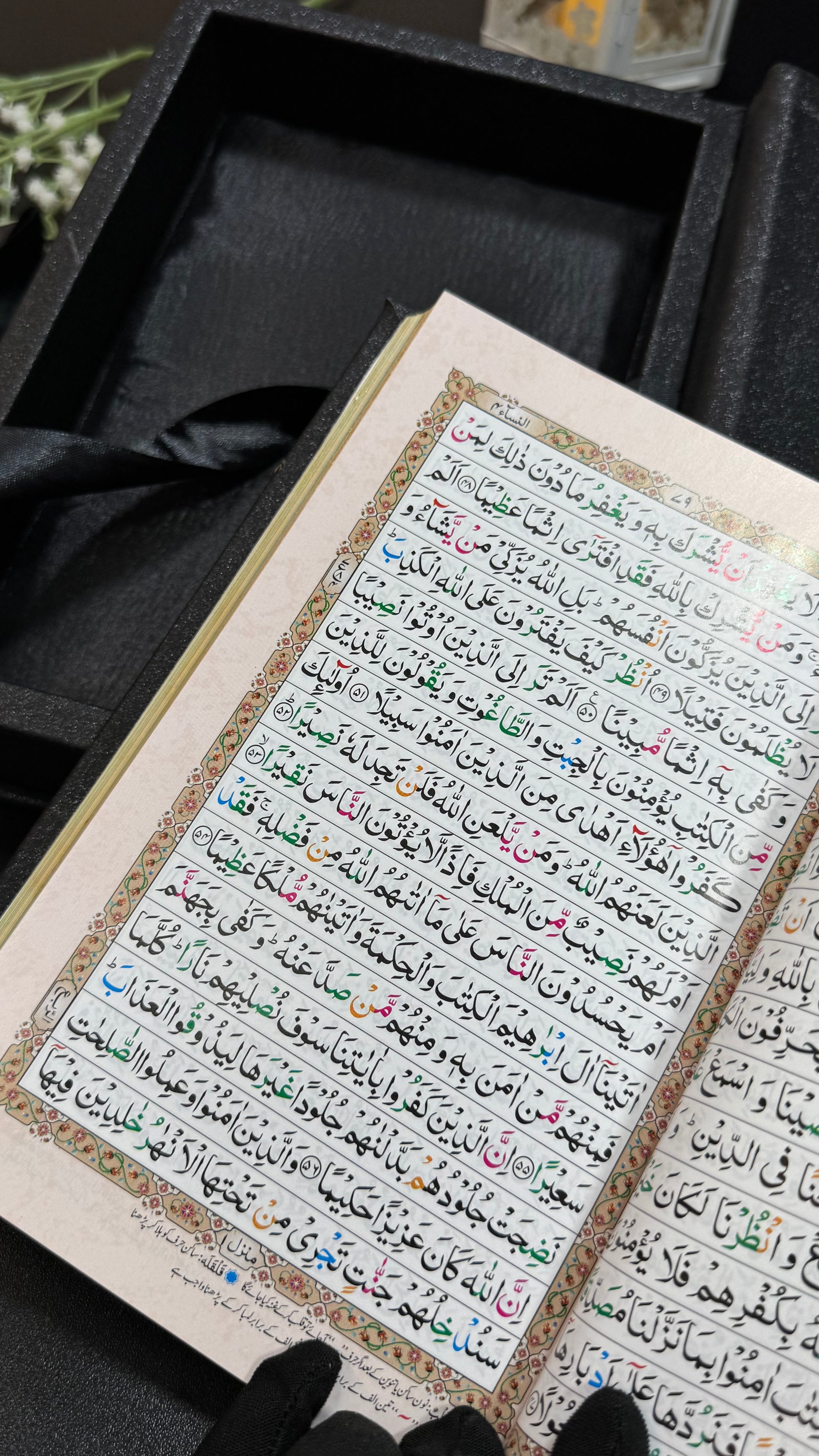 Each Quran comes in a glittery solid box, exuding elegance and making it a perfect Islamic gift for weddings, birthdays, Nikkah, Hajj/Umrah return, and housewarmings.