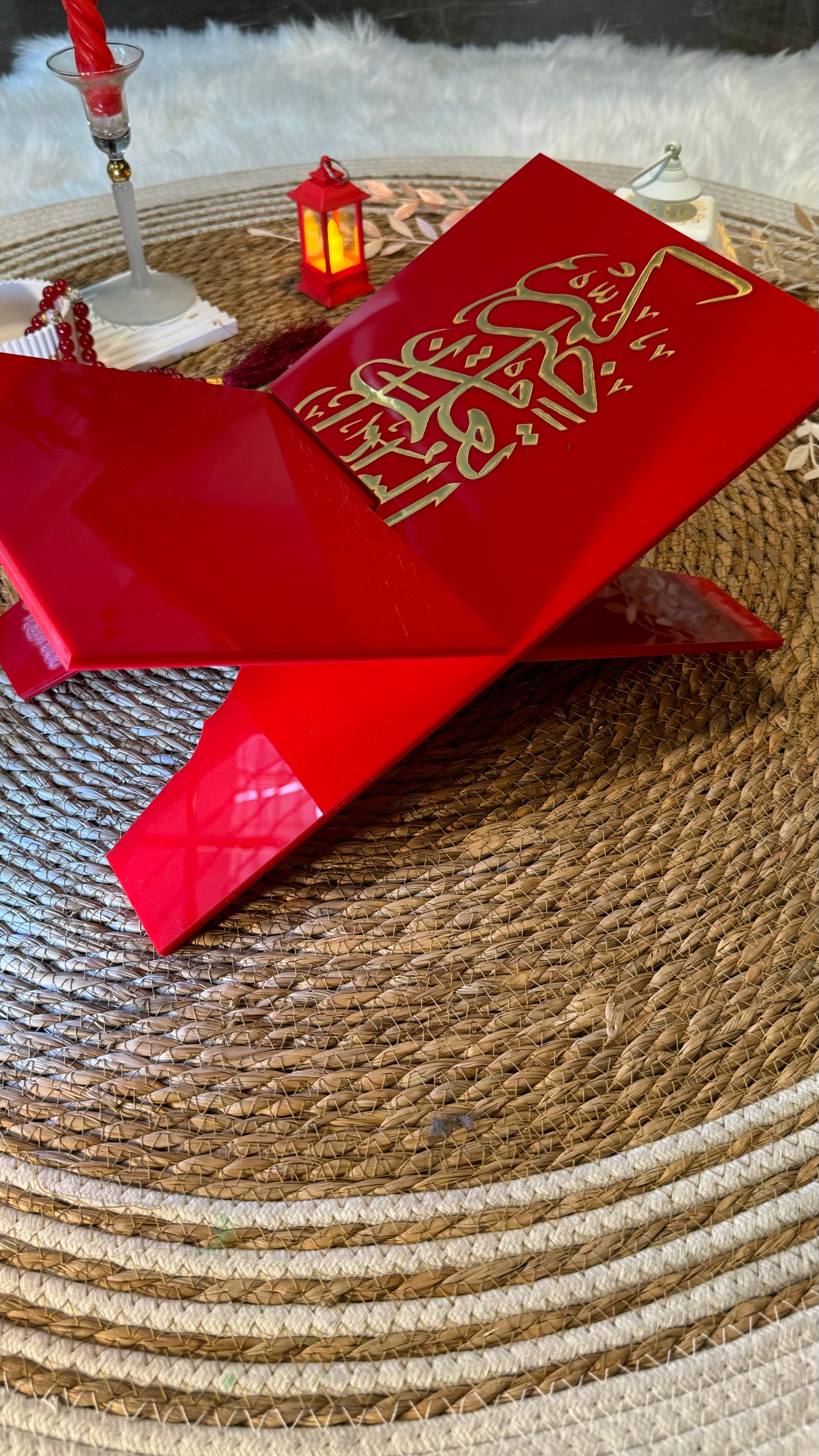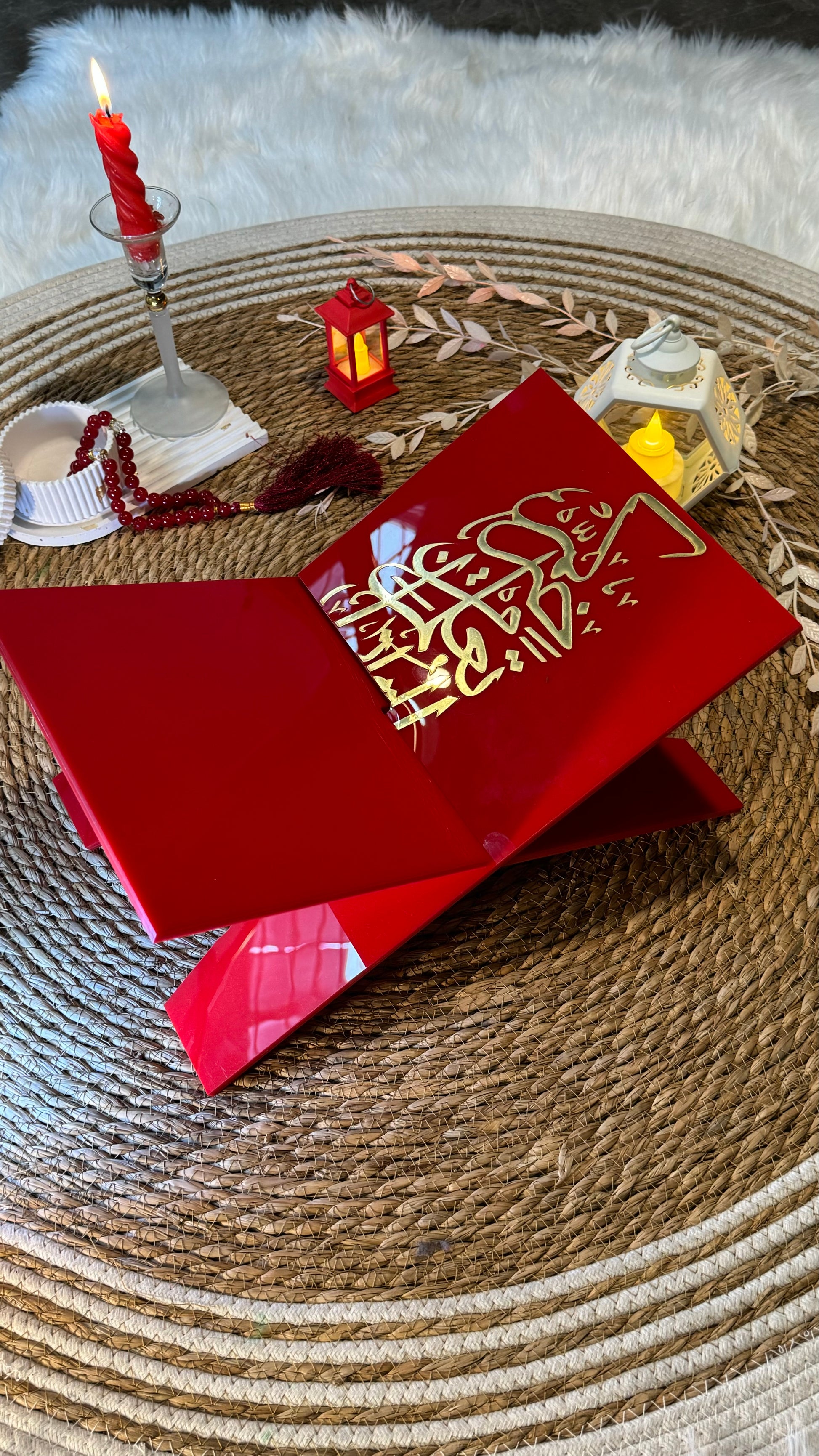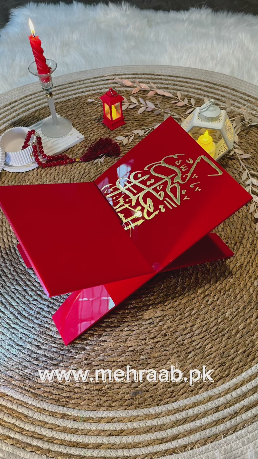 The Acrylic red Color Rehal! πΈπ Available in dimensions of 15*9 inches with a thickness of 6mm, each rehal comes in a beautiful box packaging. Perfect for personal use or as a thoughtful gift, this elegant and functional addition is sure to impress.
