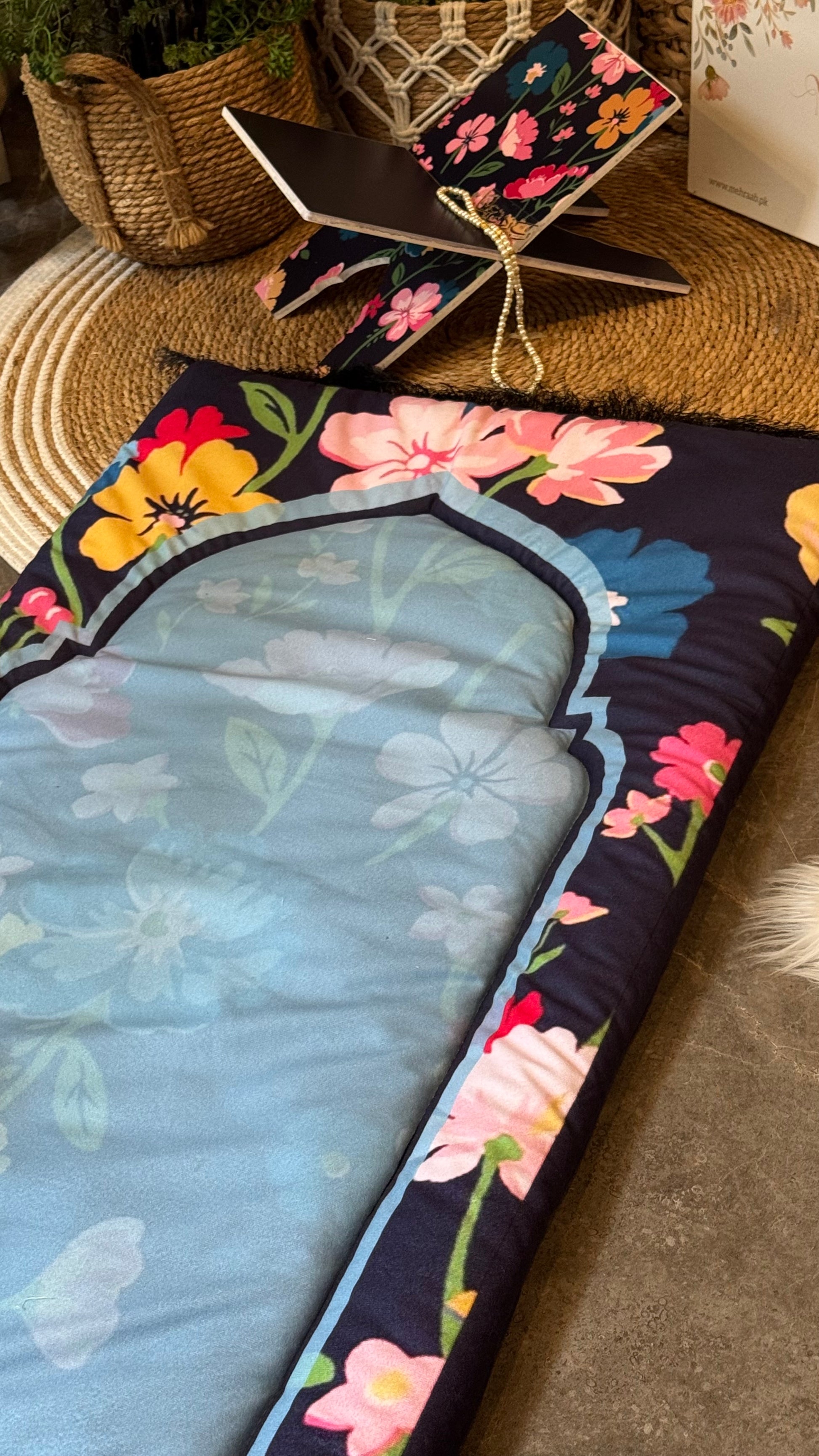 Each set includes a coordinated floral Rehal, a matching tasbeeh, and comes packaged in our signature Mehraab floral gift box—making it a thoughtful Islamic gift for loved ones on Ramadan, Eid, Nikkah, Hajj, Umrah, housewarming, or birthdays.