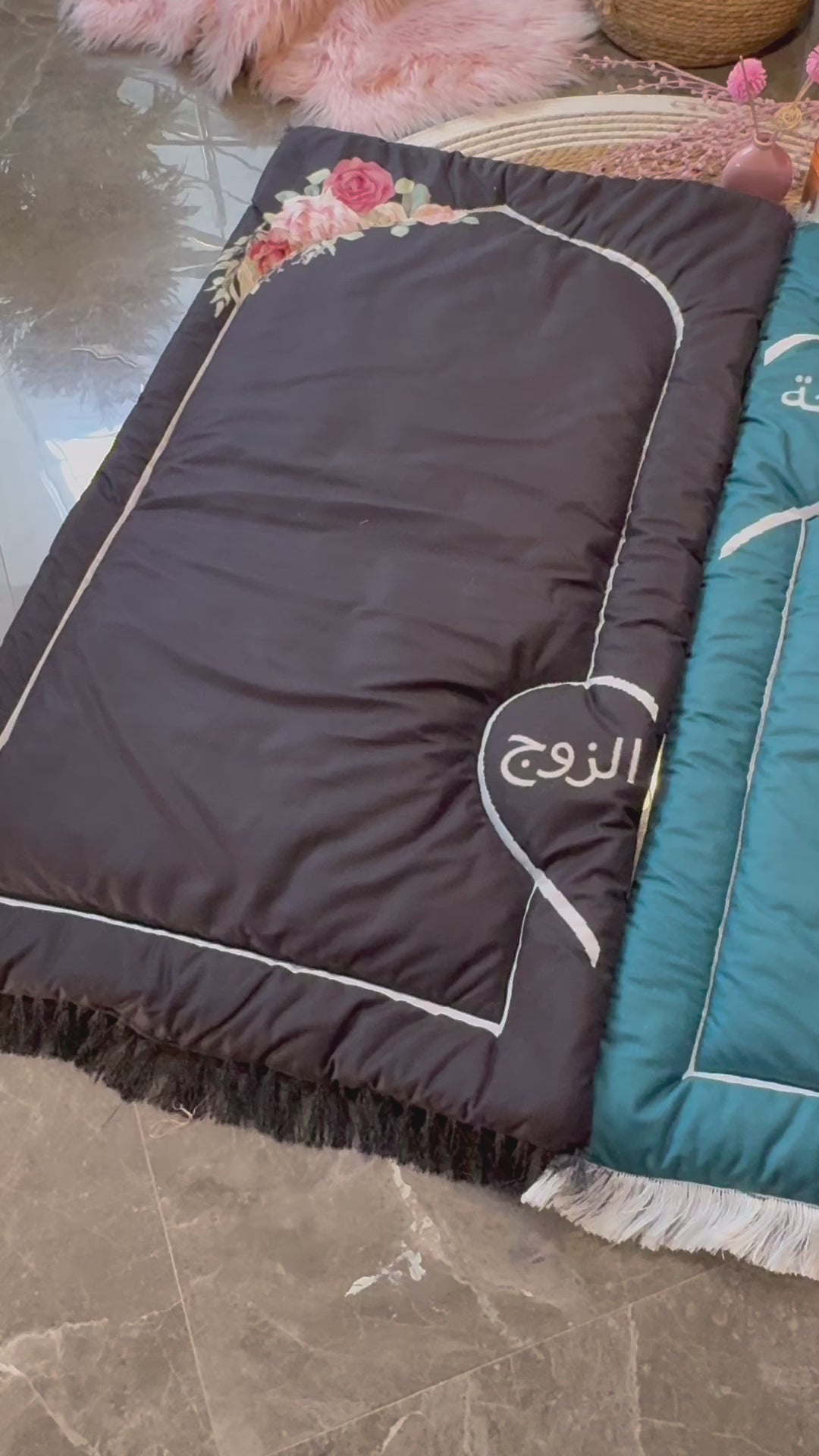 The ideal wedding day present for newly weds, a pair of janamaz for the new couple to pray together.