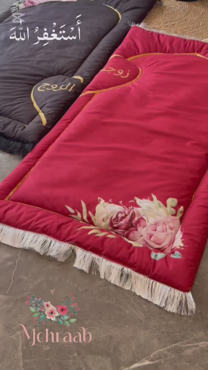 Elevate your spiritual connection with our latest Couple Prayer Mats, now available in stunning deep red and classic black velvet shades. Thoughtfully designed to celebrate unity in worship, these mats are a beautiful gift for newlyweds, anniversaries, or any couple who cherishes praying together.