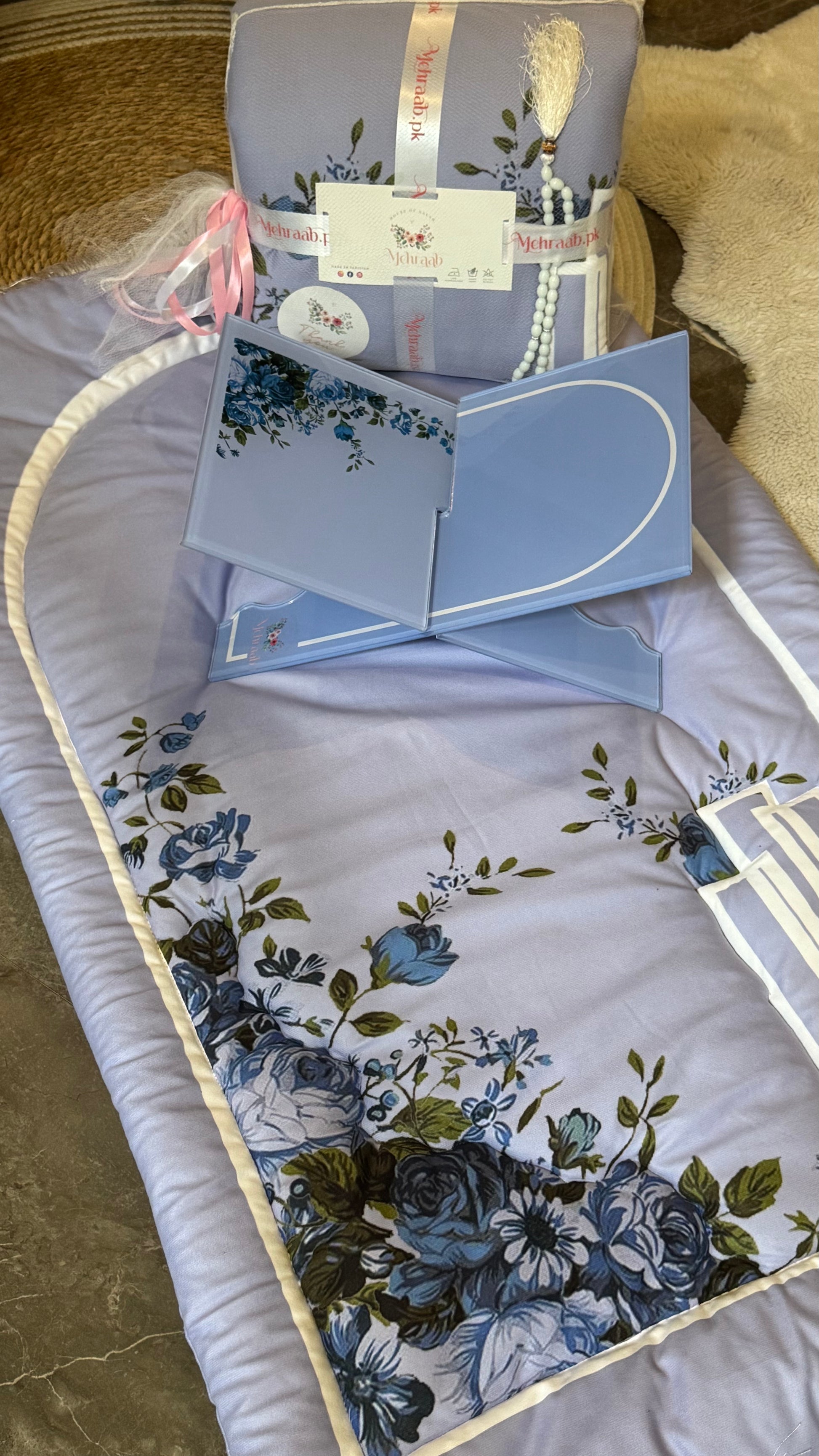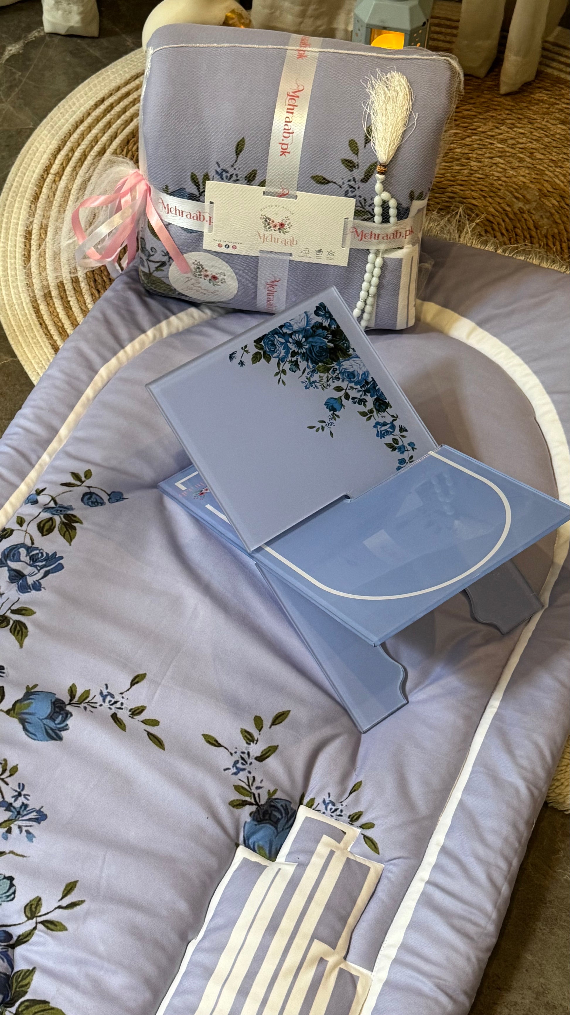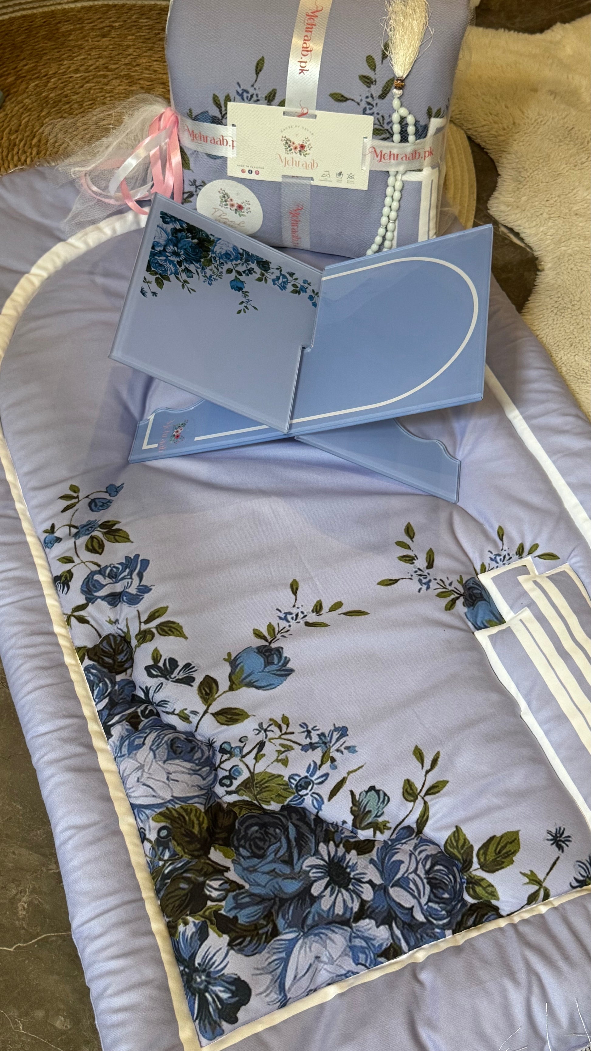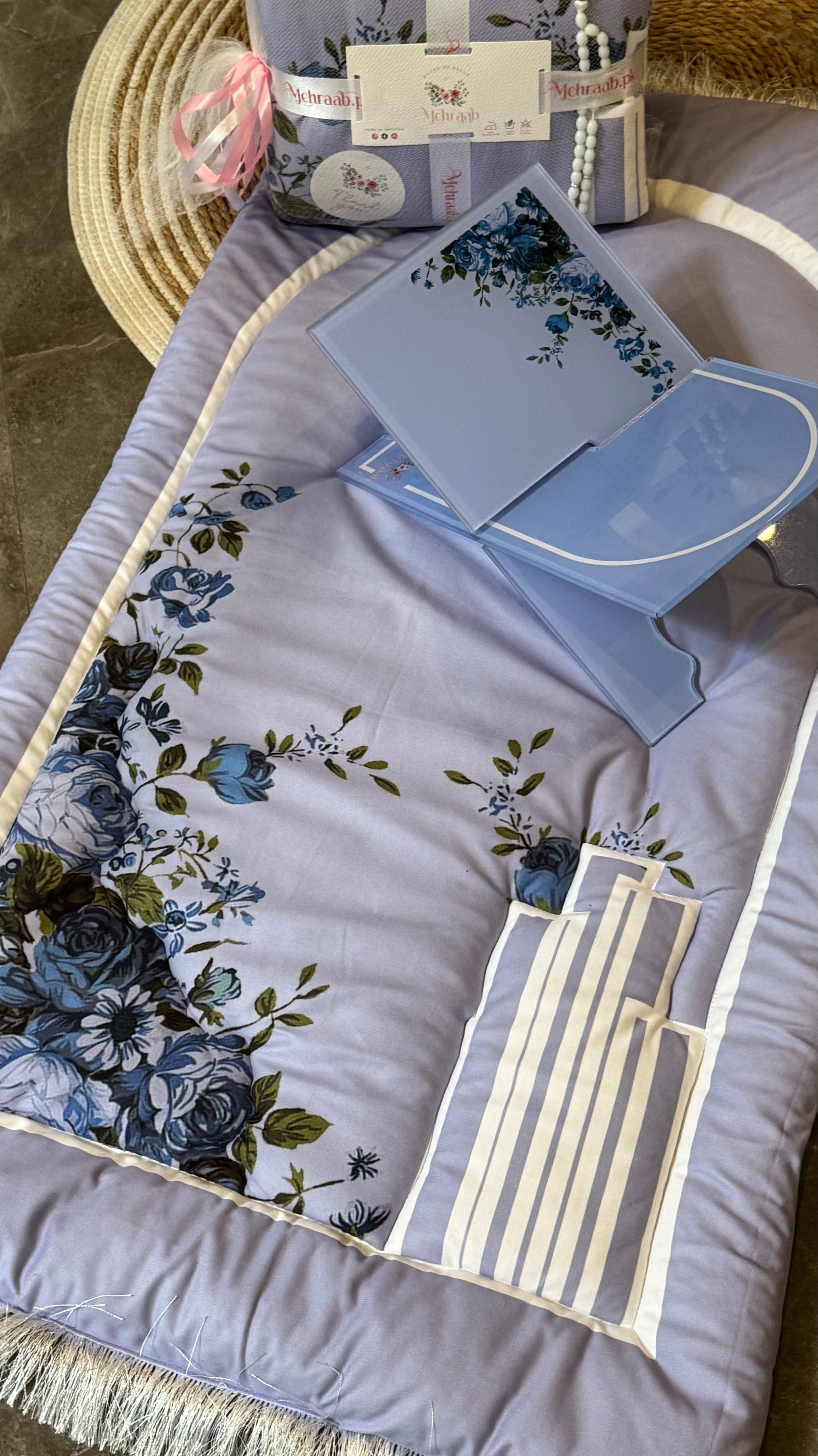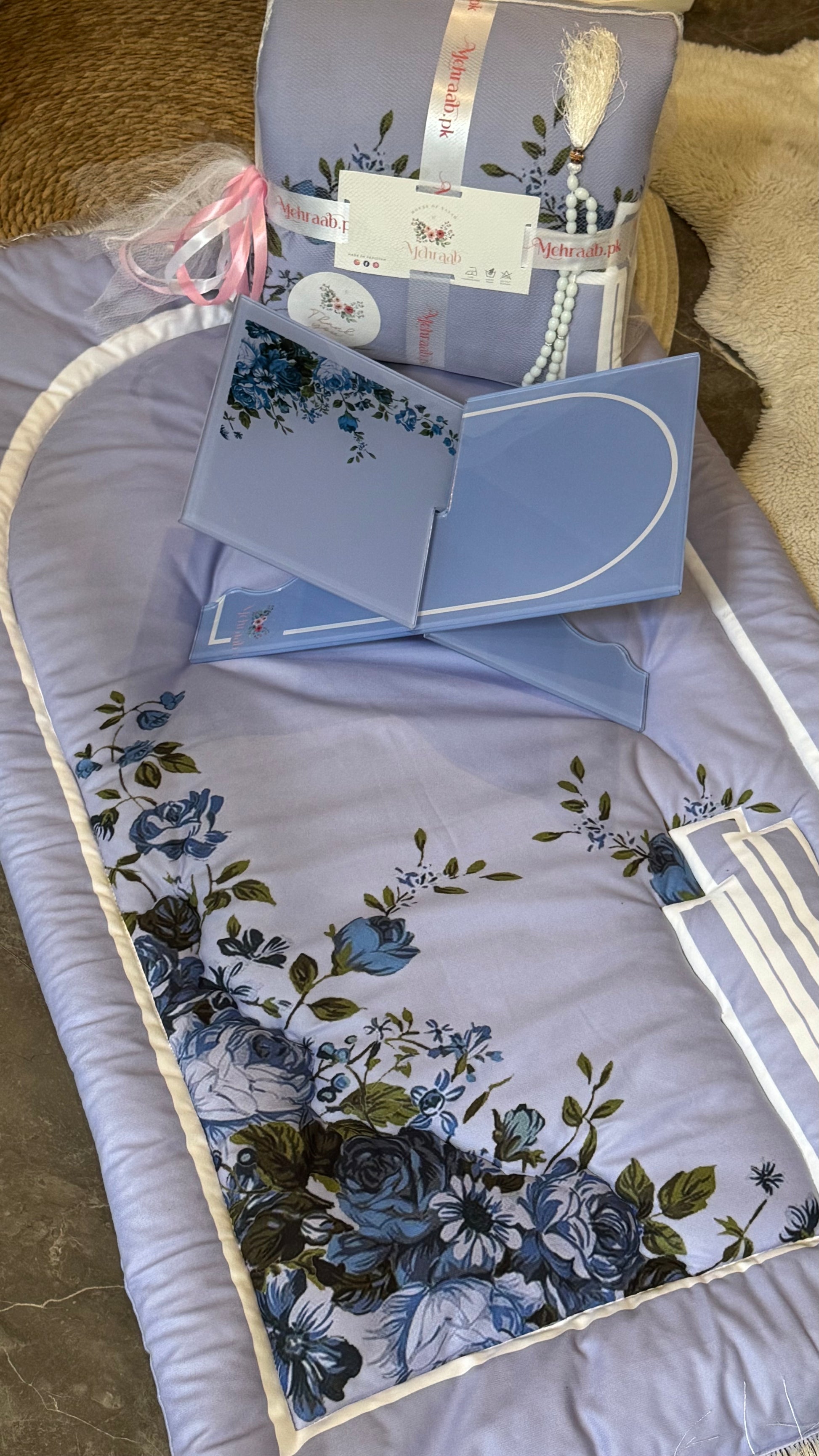 Complete the set with our beautifully coordinated Blossom Serenity Rehal, designed in the same floral theme. Sold separately and perfect for holding the Quran with grace and ease.