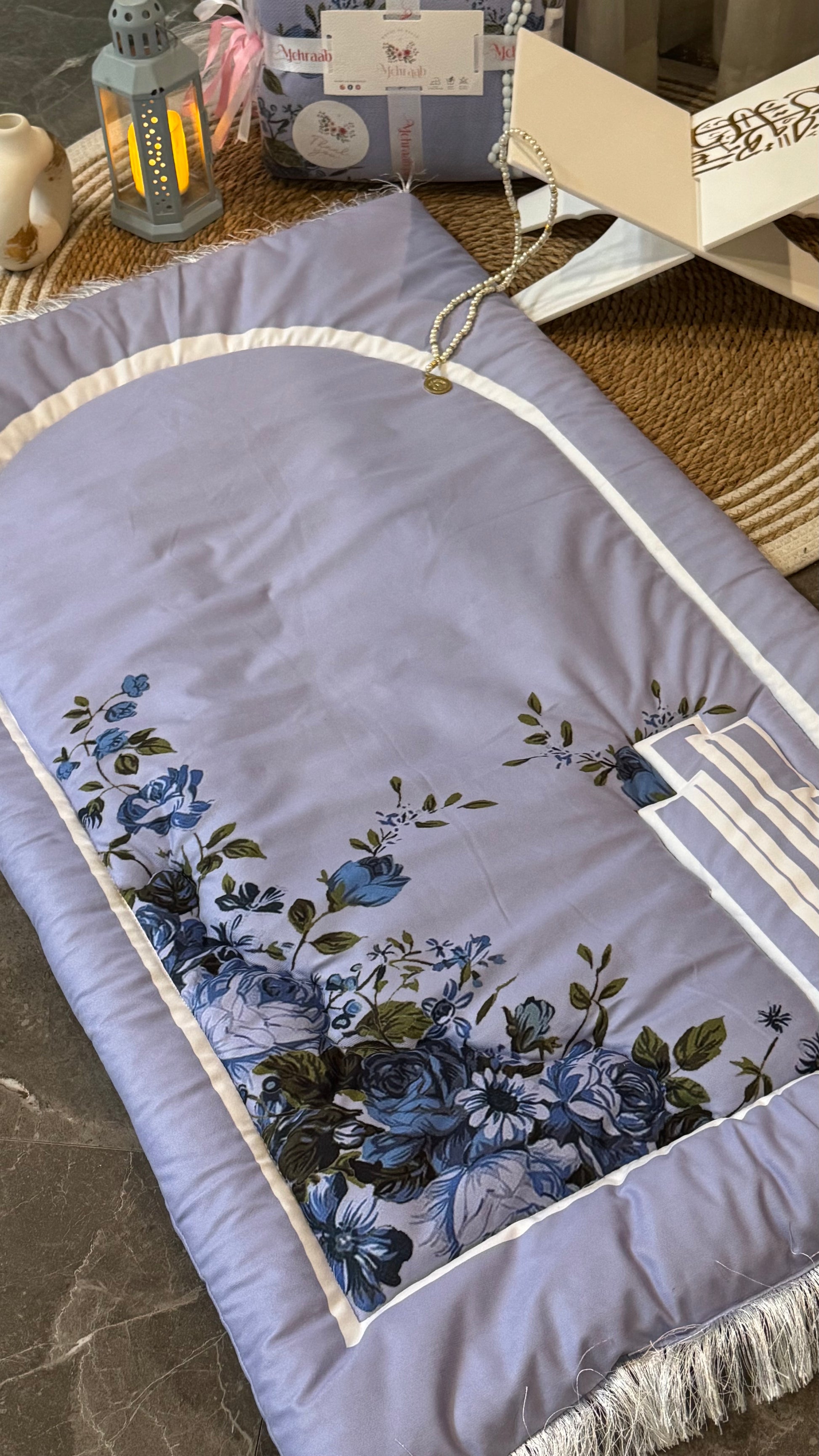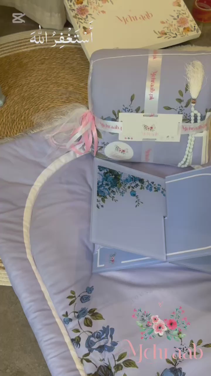 Wrap yourself in peace and elegance during your moments of prayer with our Blossom Serenity Adult Prayer Mat, part of our Floral Blue Collection. This beautifully crafted prayer mat is made from imported Korean velvet, featuring delicate blue floral patterns that evoke calm and tranquility.