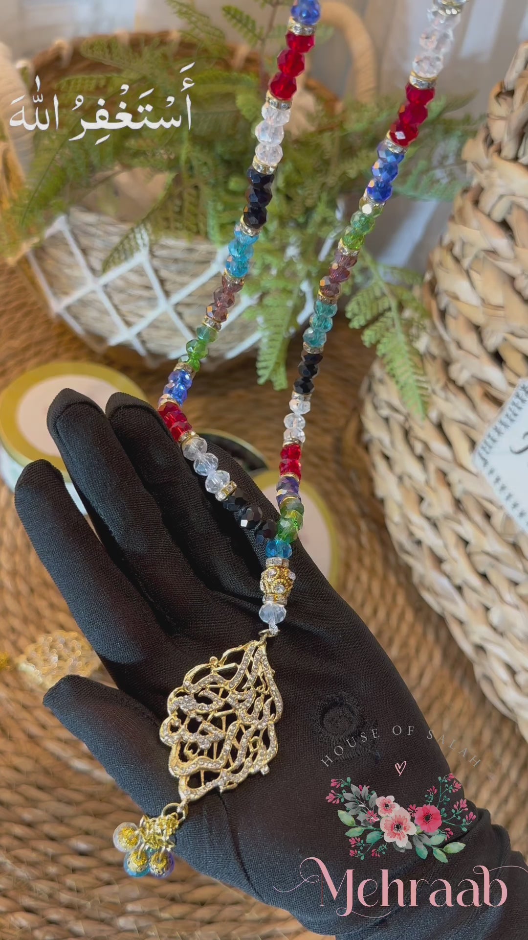 100-Bead Multicolor Tasbeeh with Metal Bismillah Pendant
