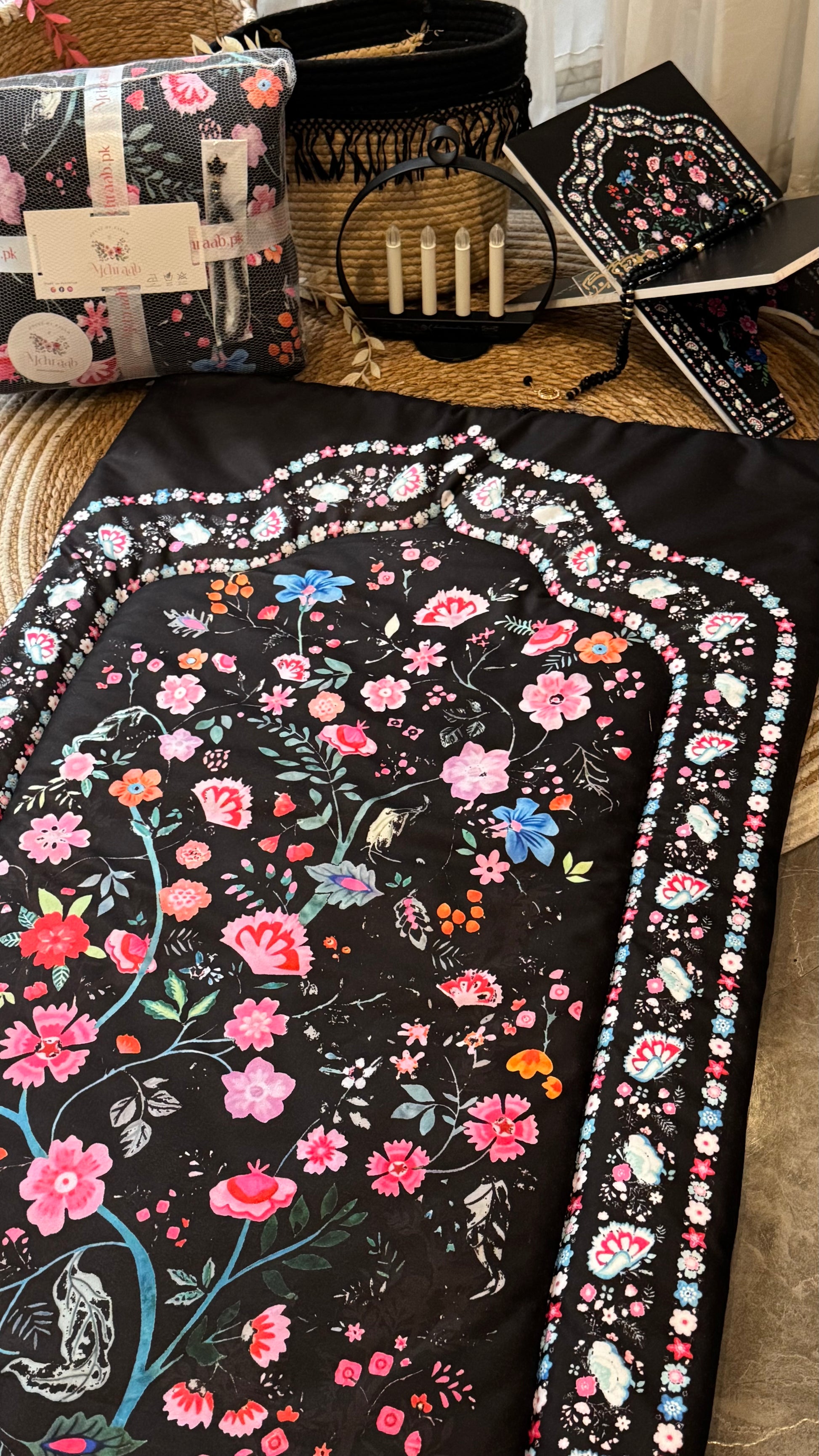 This exclusive bundle includes a large customized prayer mat, a matching Rehal, a beautiful tasbeeh, and a coordinated bookmark — all designed with the same decorative theme to create a harmonious and luxurious prayer experience. Each item complements the other, making this bundle perfect for personal use or as a meaningful Islamic gift.