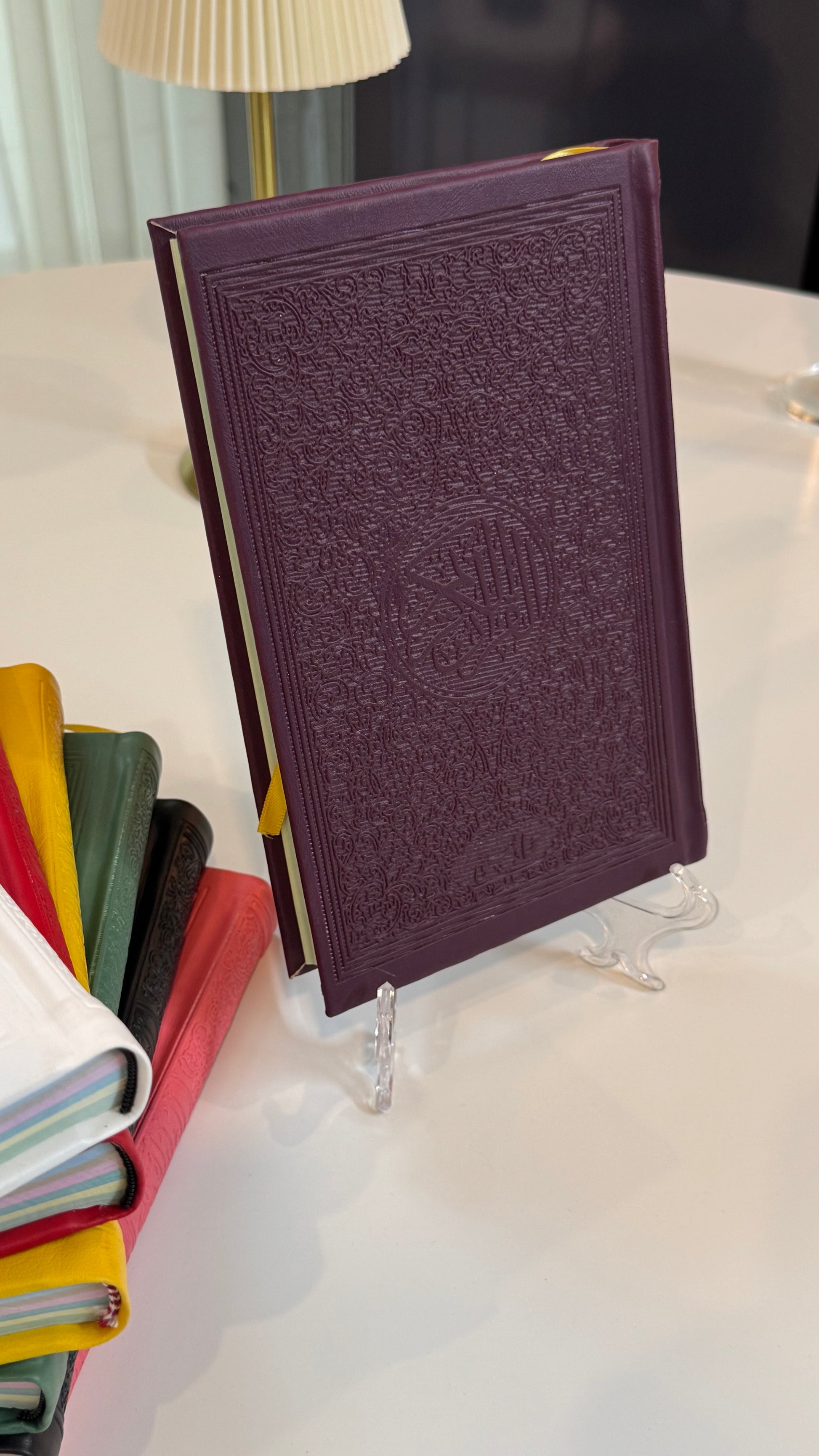 Crafted with premium quality pages and wrapped in vibrant leather covers, each Quran comes in a range of attractive rainbow colors that can be perfectly paired with our prayer mats and Rehal collections. The Tajweed rules are clearly highlighted, making it easier for recitation, fluency, and memorization.
