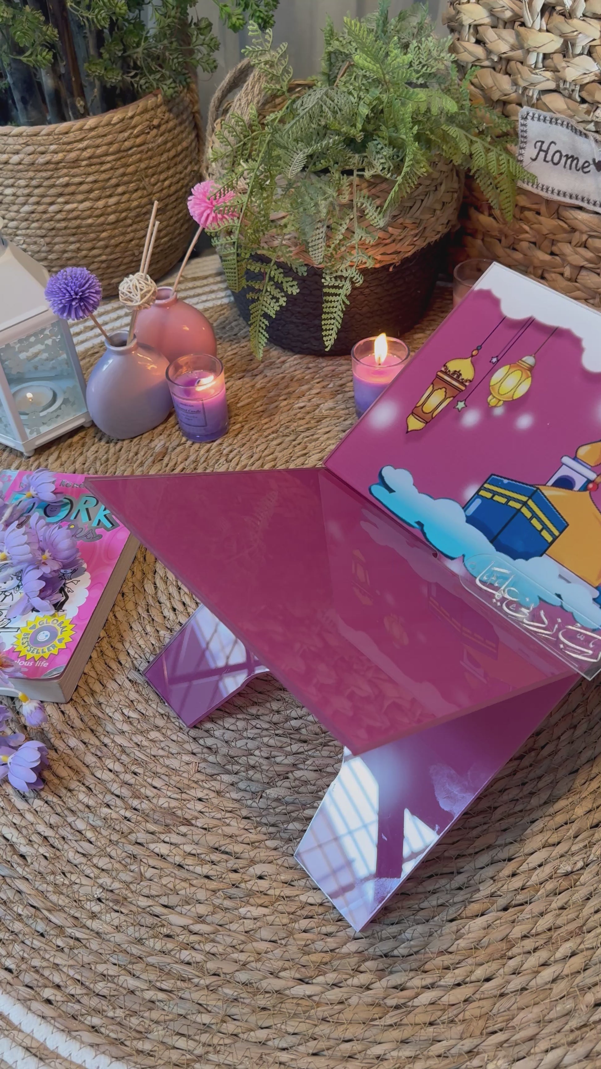 Acrylic pink Color Rehal! 🌸💜 Available in dimensions of 15*9 inches with a thickness of 8mm, each rehal comes in a beautiful box packaging. Perfect for personal use or as a thoughtful gift, this elegant and functional addition is sure to impress.