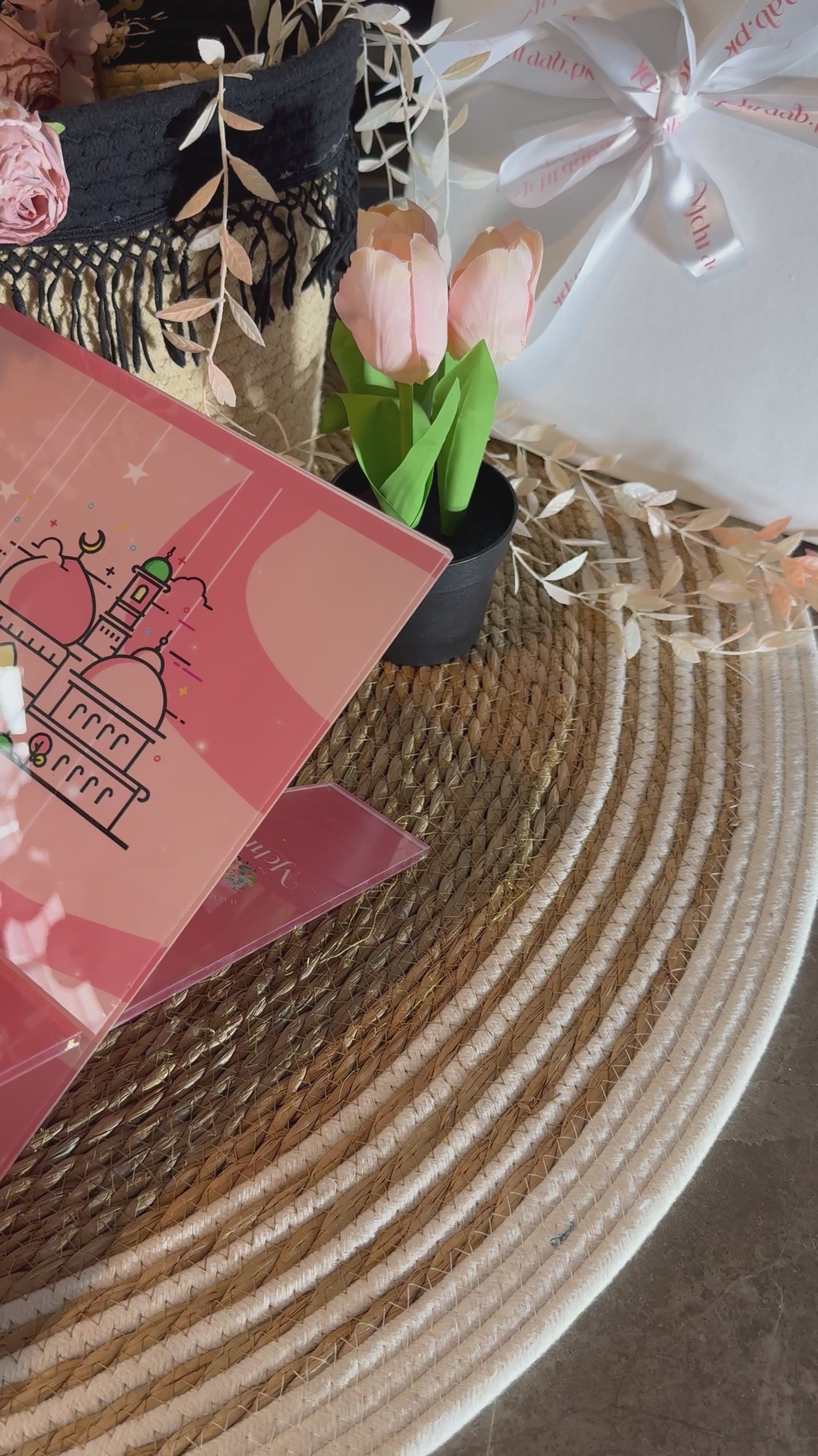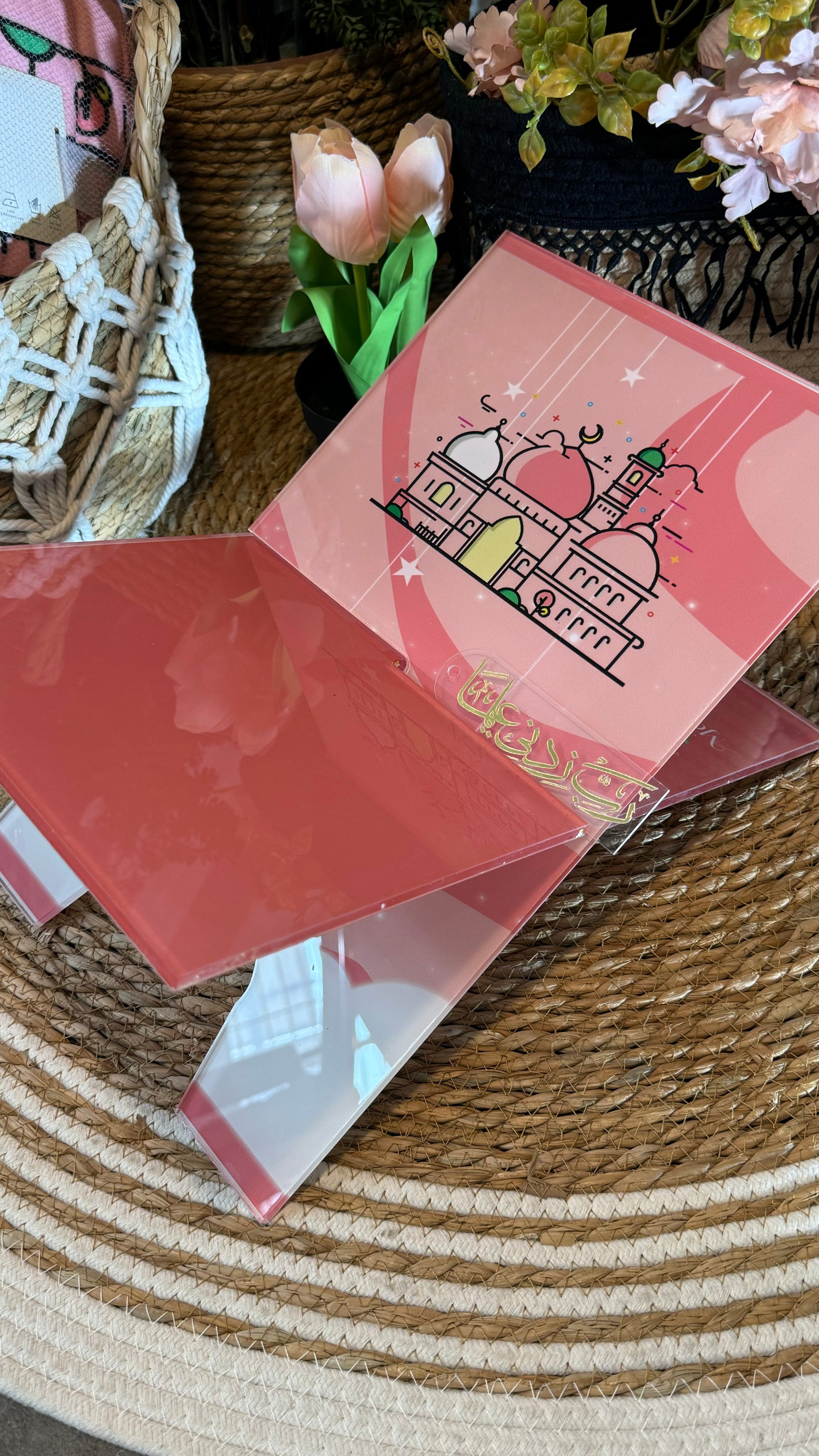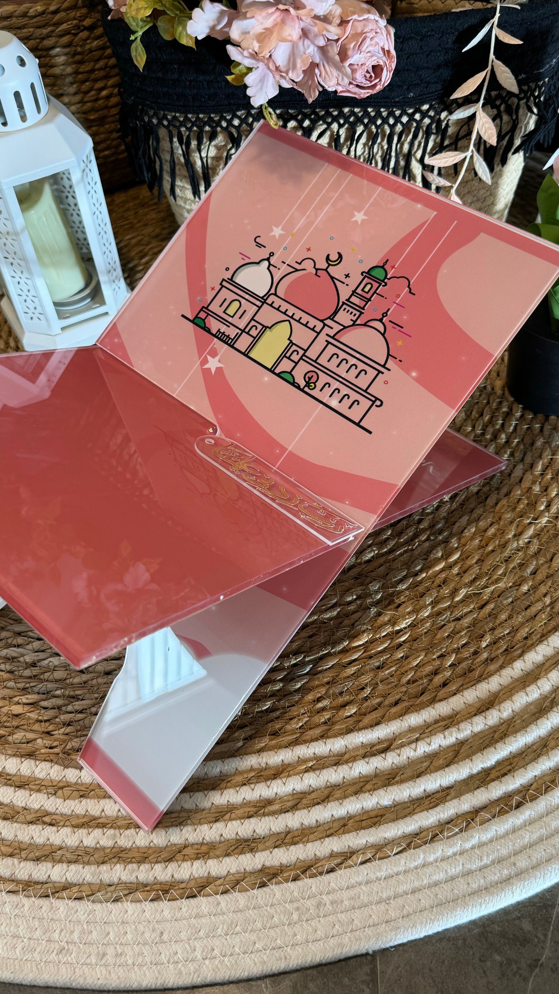 peachy pink color large-size rehal, designed to perfectly match our prayer mat. Each item can be purchased separately, allowing flexibility to suit your needs.