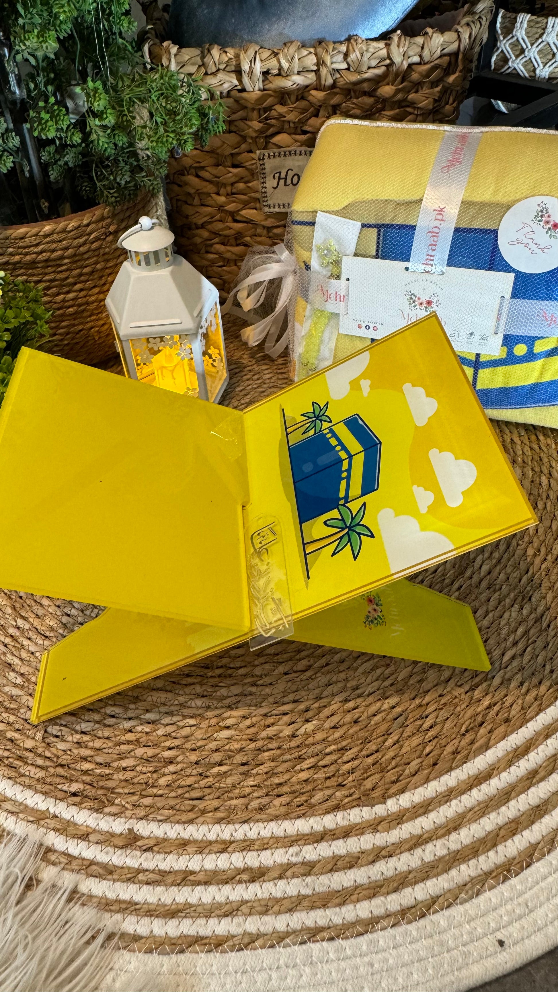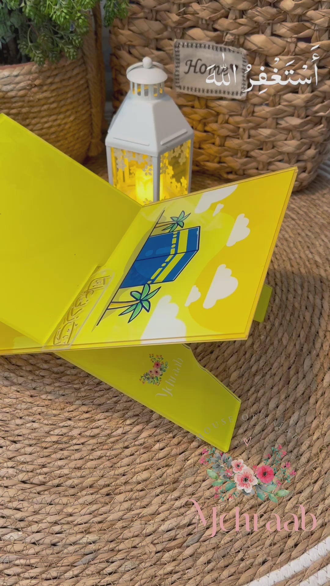 yellow color large-size rehal, designed to perfectly match our prayer mat. Each item can be purchased separately, allowing flexibility to suit your needs.