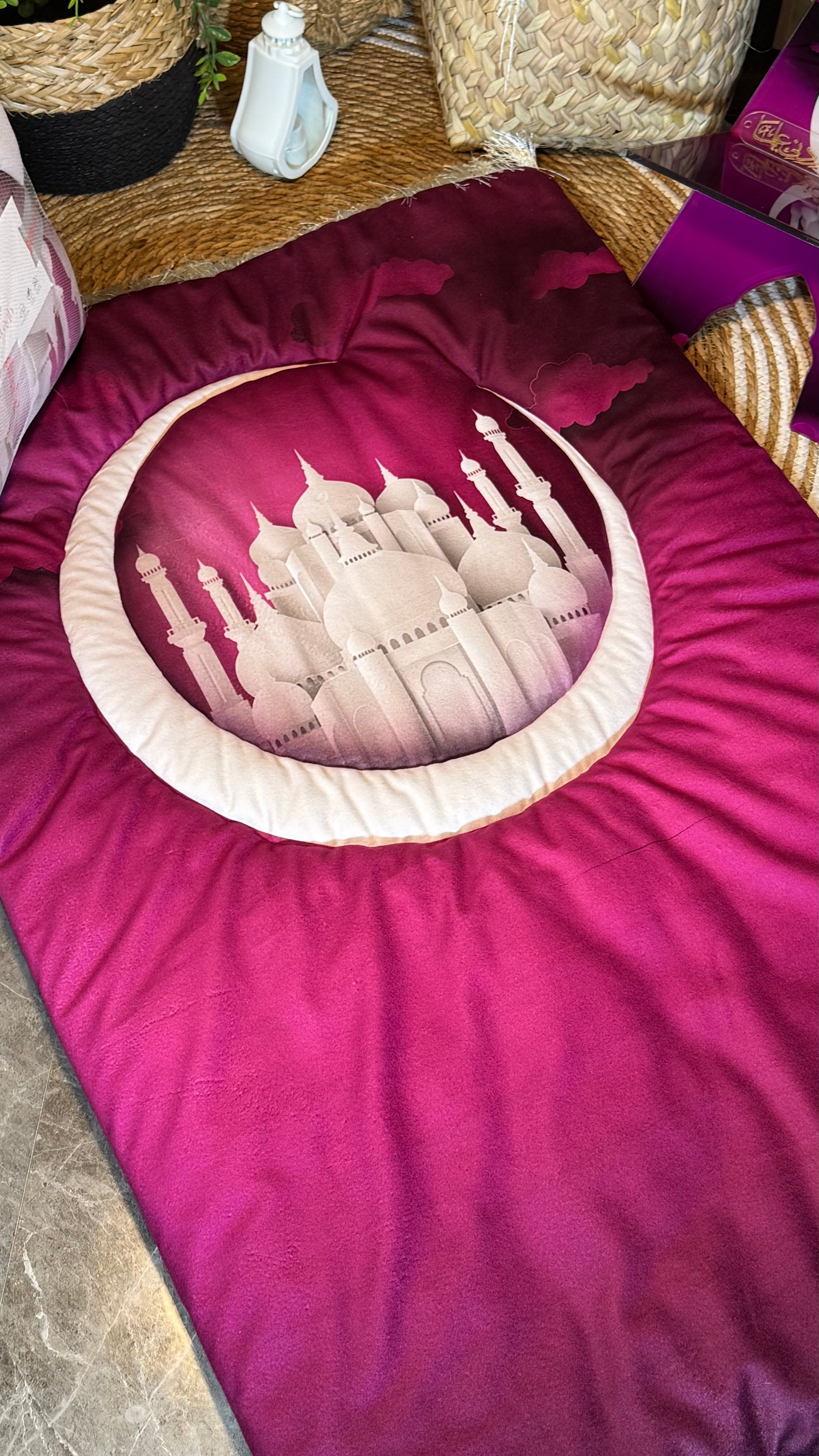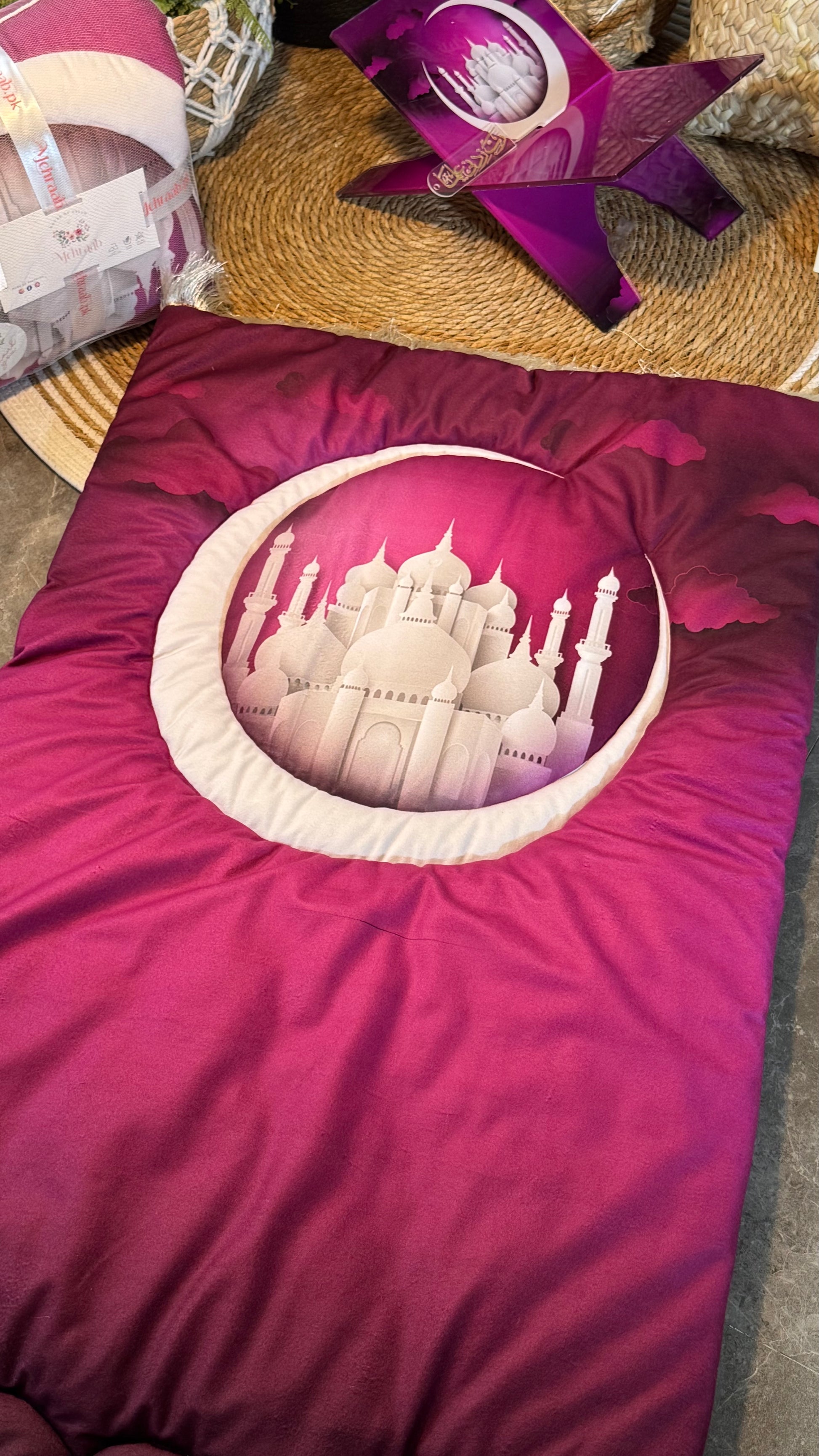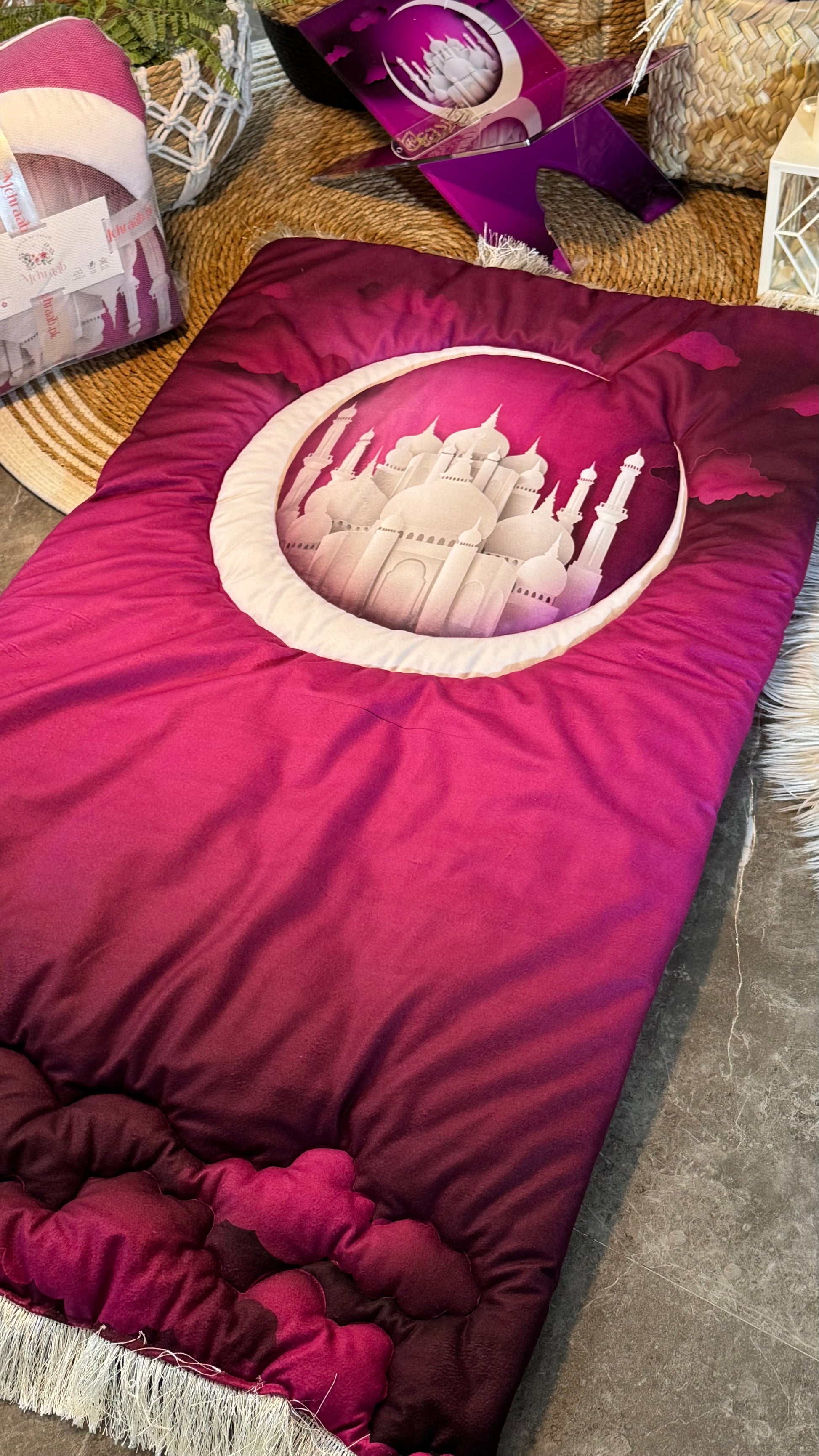Introducing our Ruby Glow prayer mat, a perfect blend of elegance, comfort, and practicality. Designed with devotion in mind, this mat redefines your prayer experience.