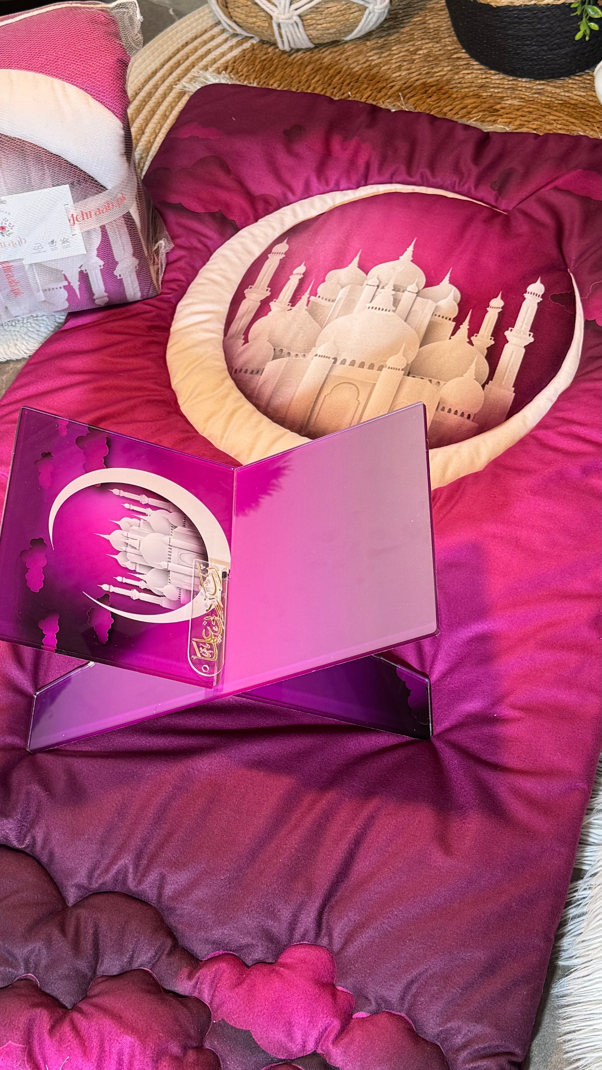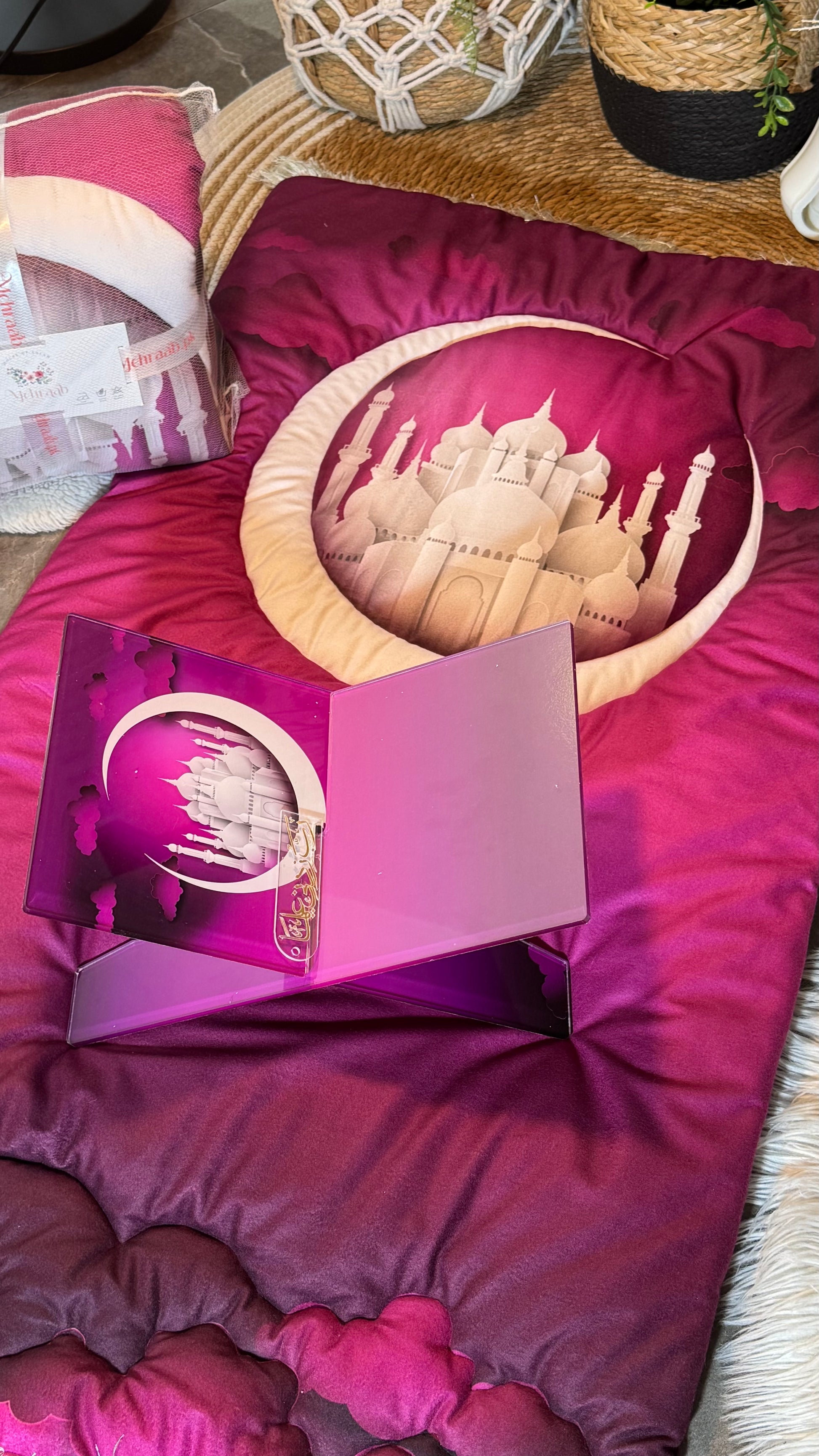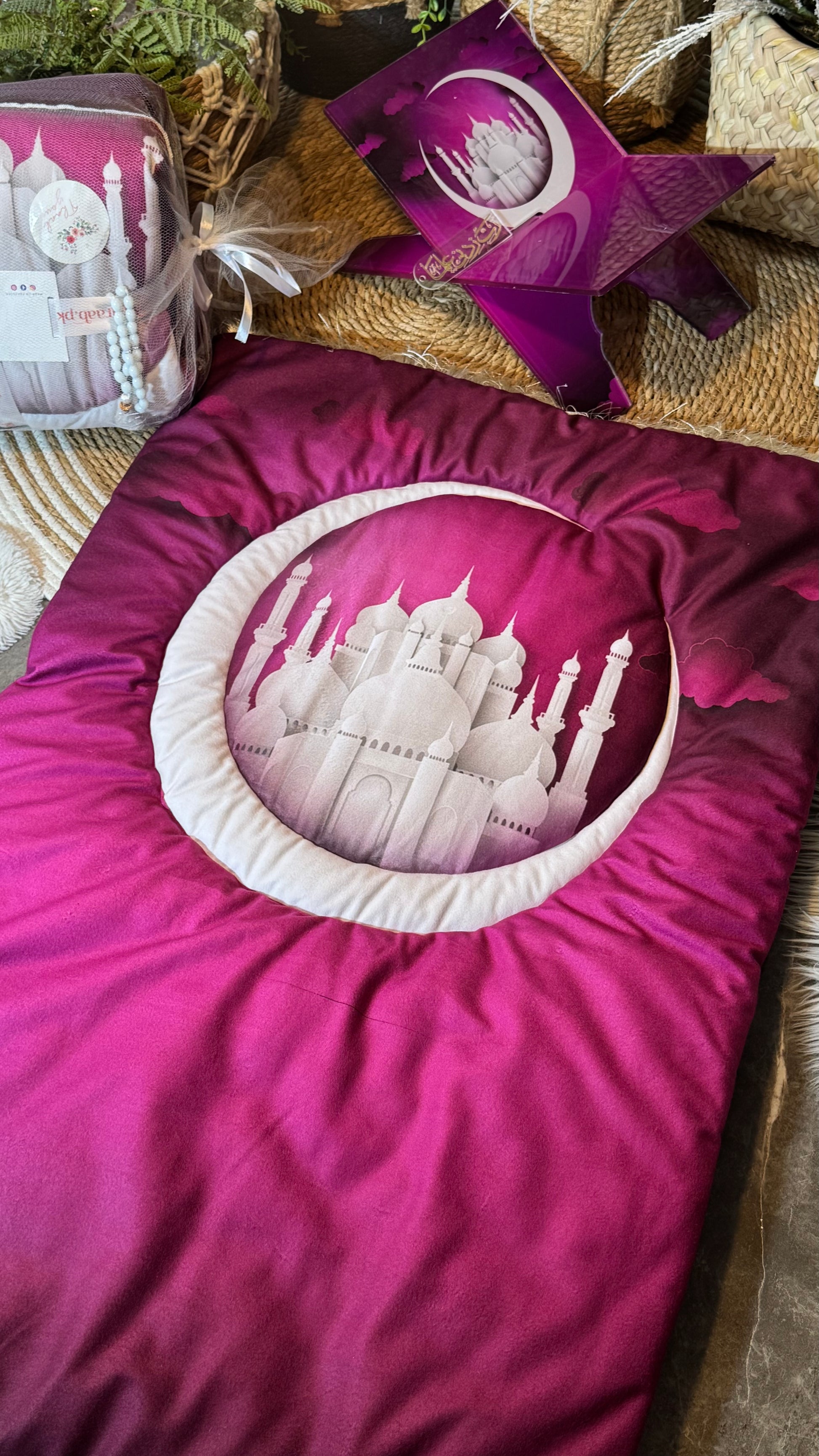 Introducing our Ruby Glow prayer mat, a perfect blend of elegance, comfort, and practicality. Designed with devotion in mind, this mat redefines your prayer experience.