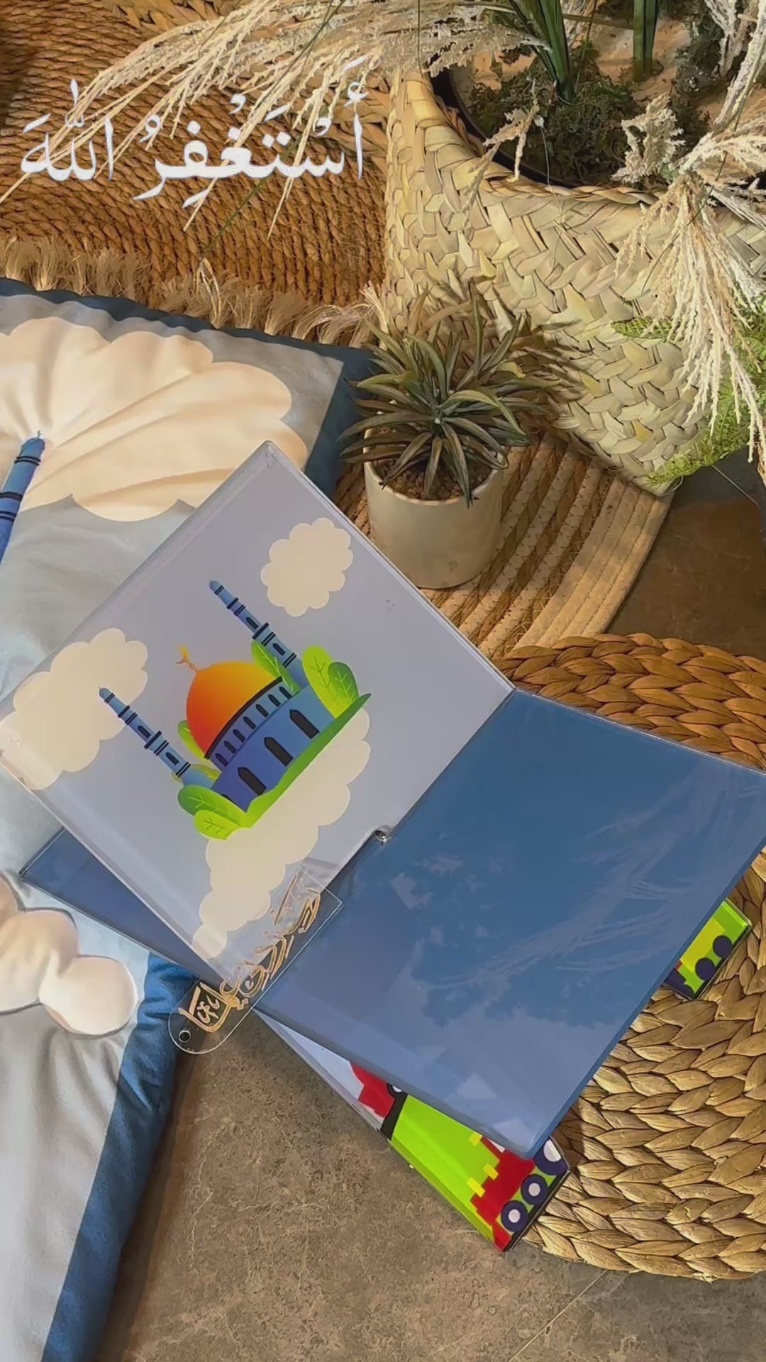 A janamaz for the younger ones that love everything cars. Primarily, boys tend to like these colors and have an affinity for tall buildings. The soft blue hues and white clouds go well in a room with dark colored furniture.
