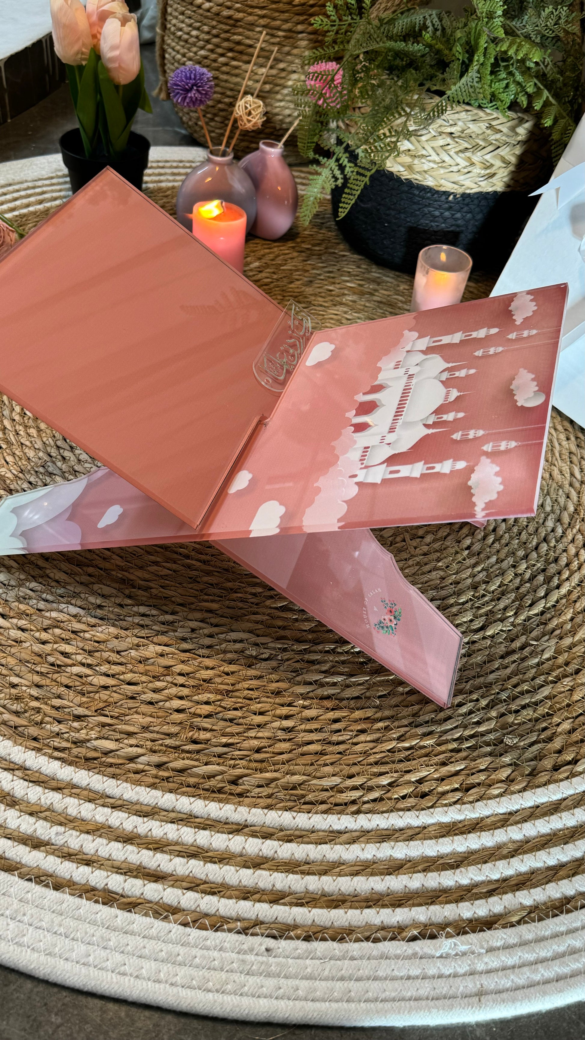 Soft pink color large-size rehal, designed to perfectly match our prayer mat. Each item can be purchased separately, allowing flexibility to suit your needs.