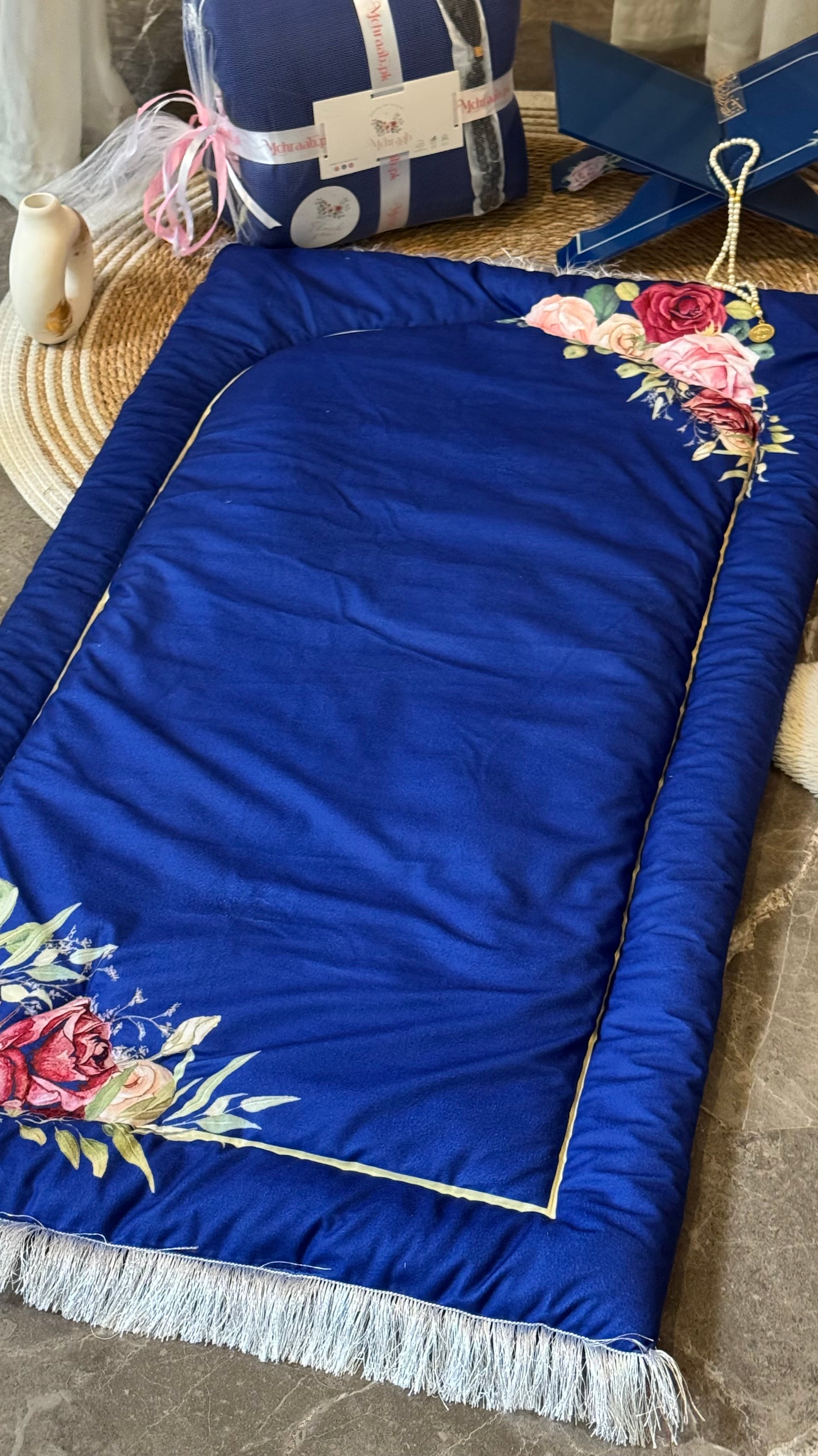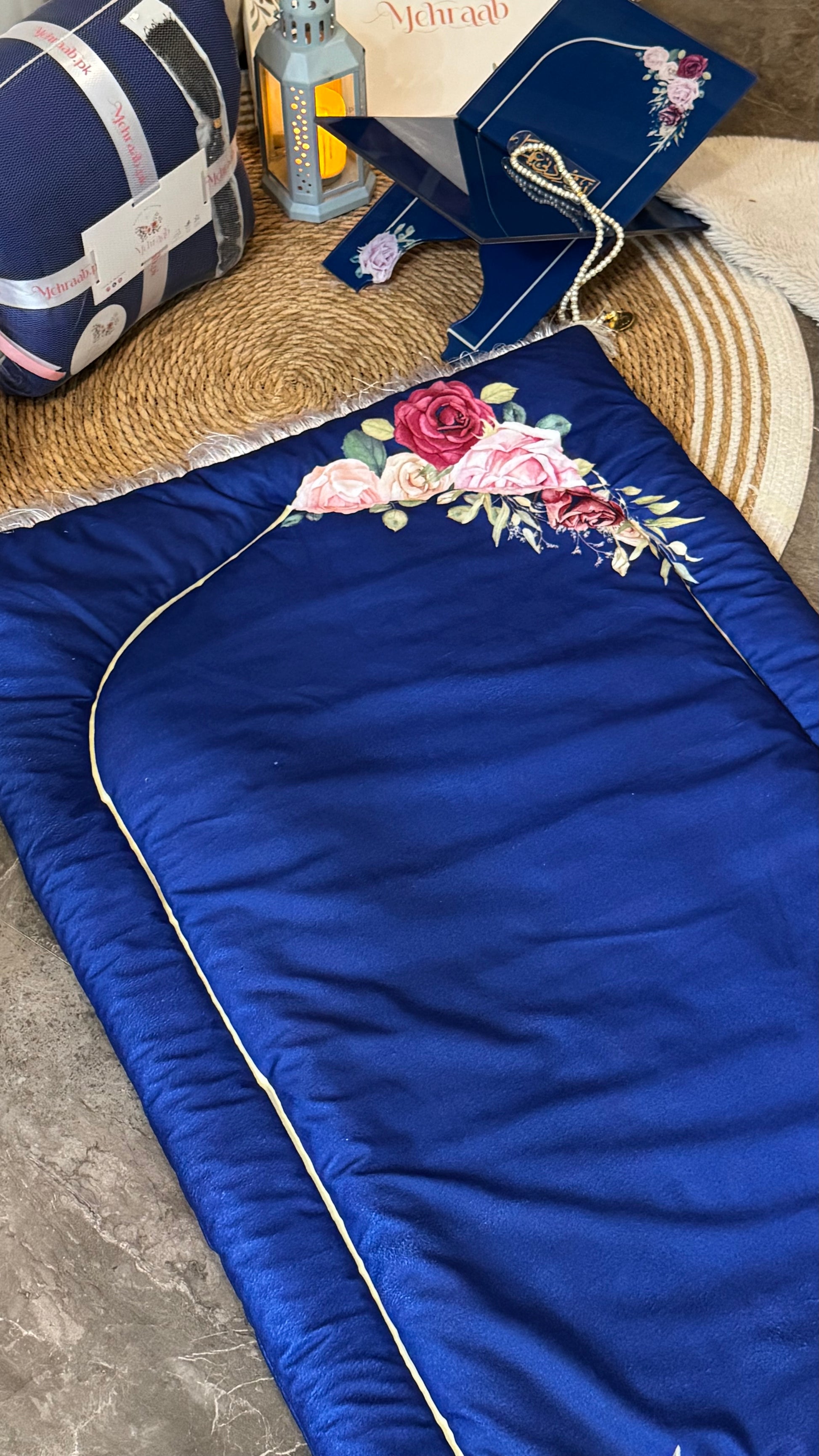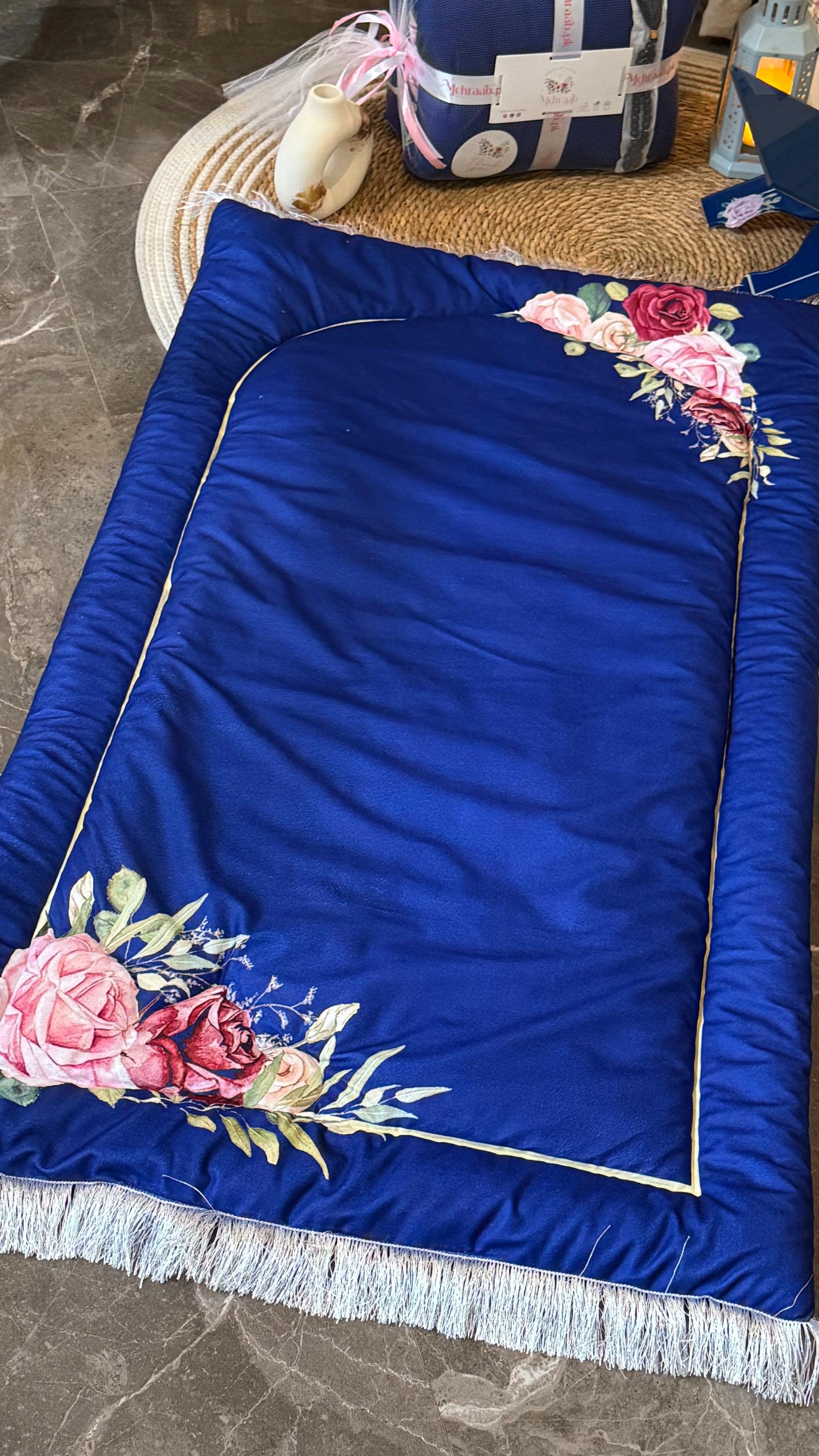 - Premium navy blue velvet padded prayer mat, made with imported Korean velvet and 300 grams of soft filling