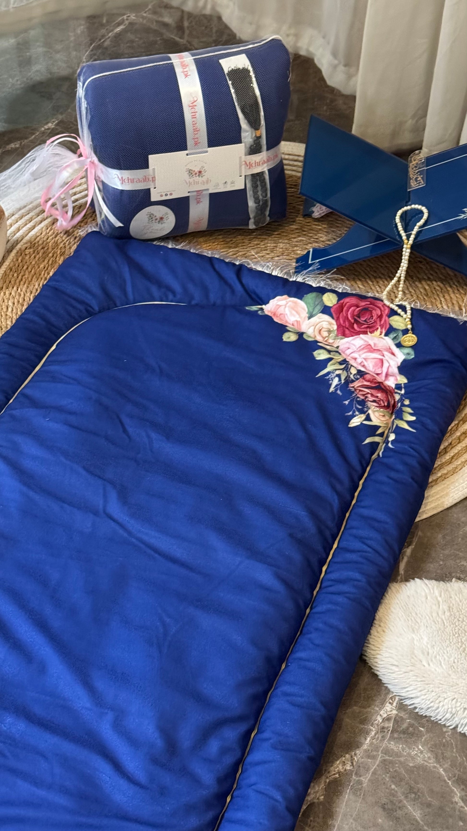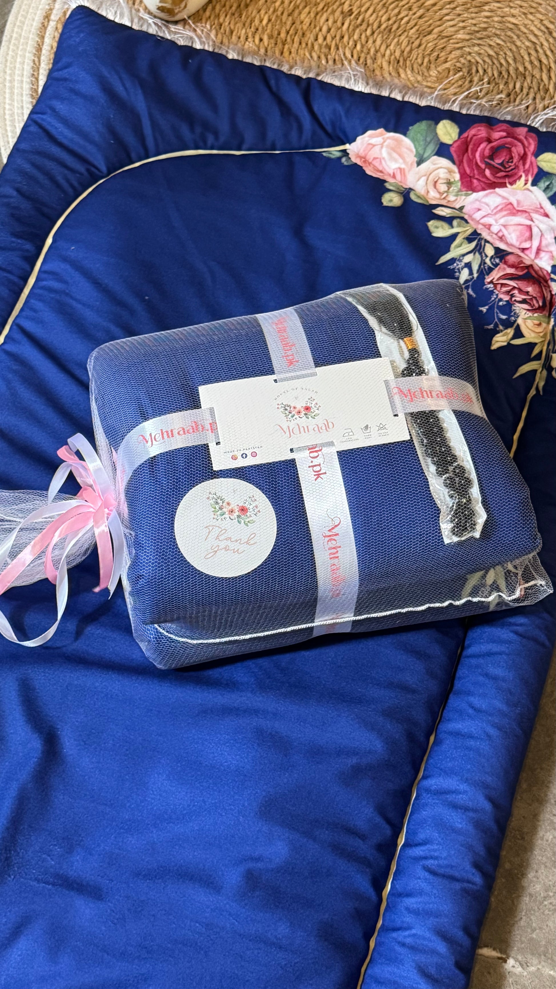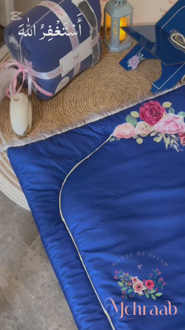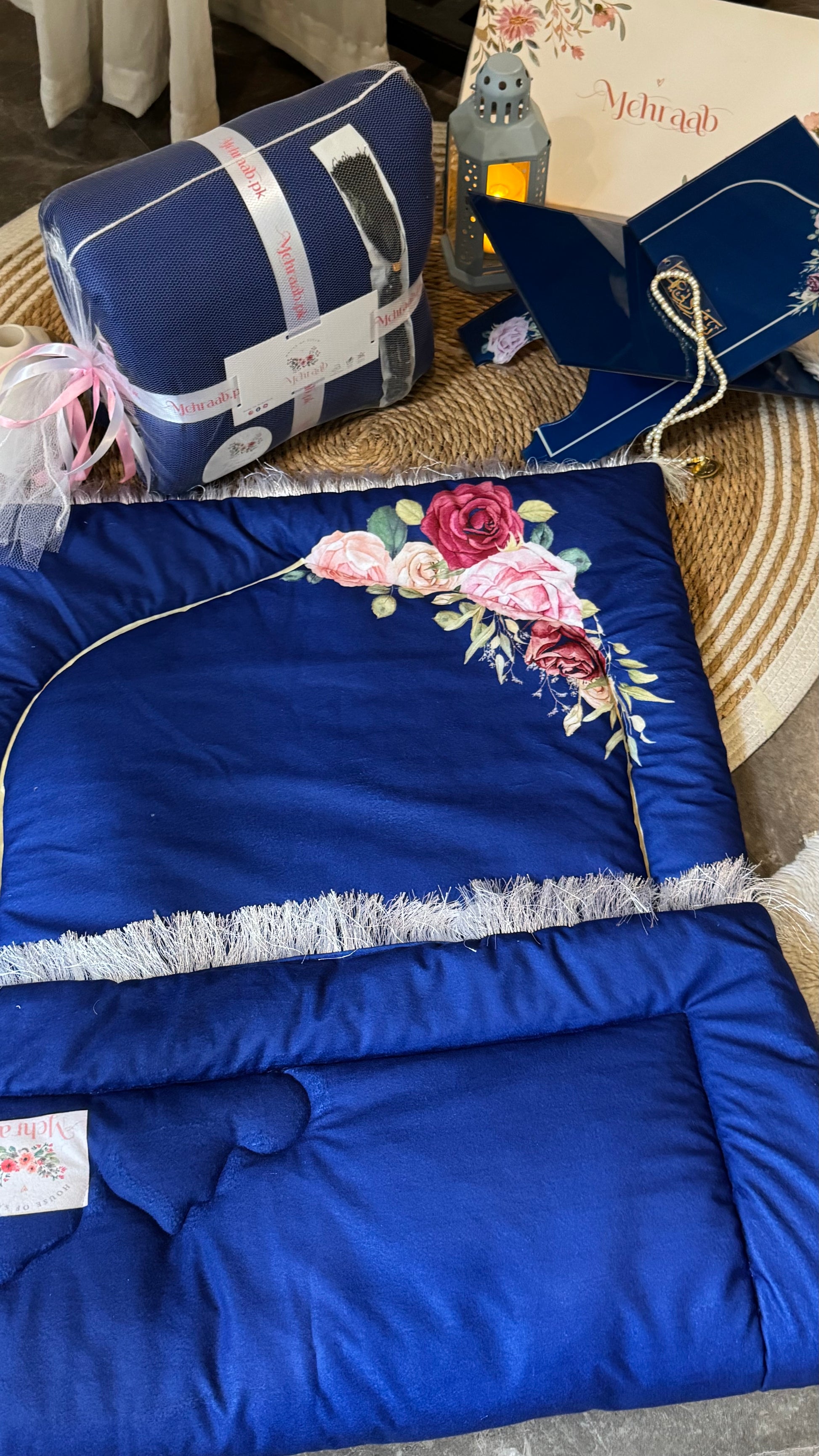 - Premium navy blue velvet padded prayer mat, made with imported Korean velvet and 300 grams of soft filling