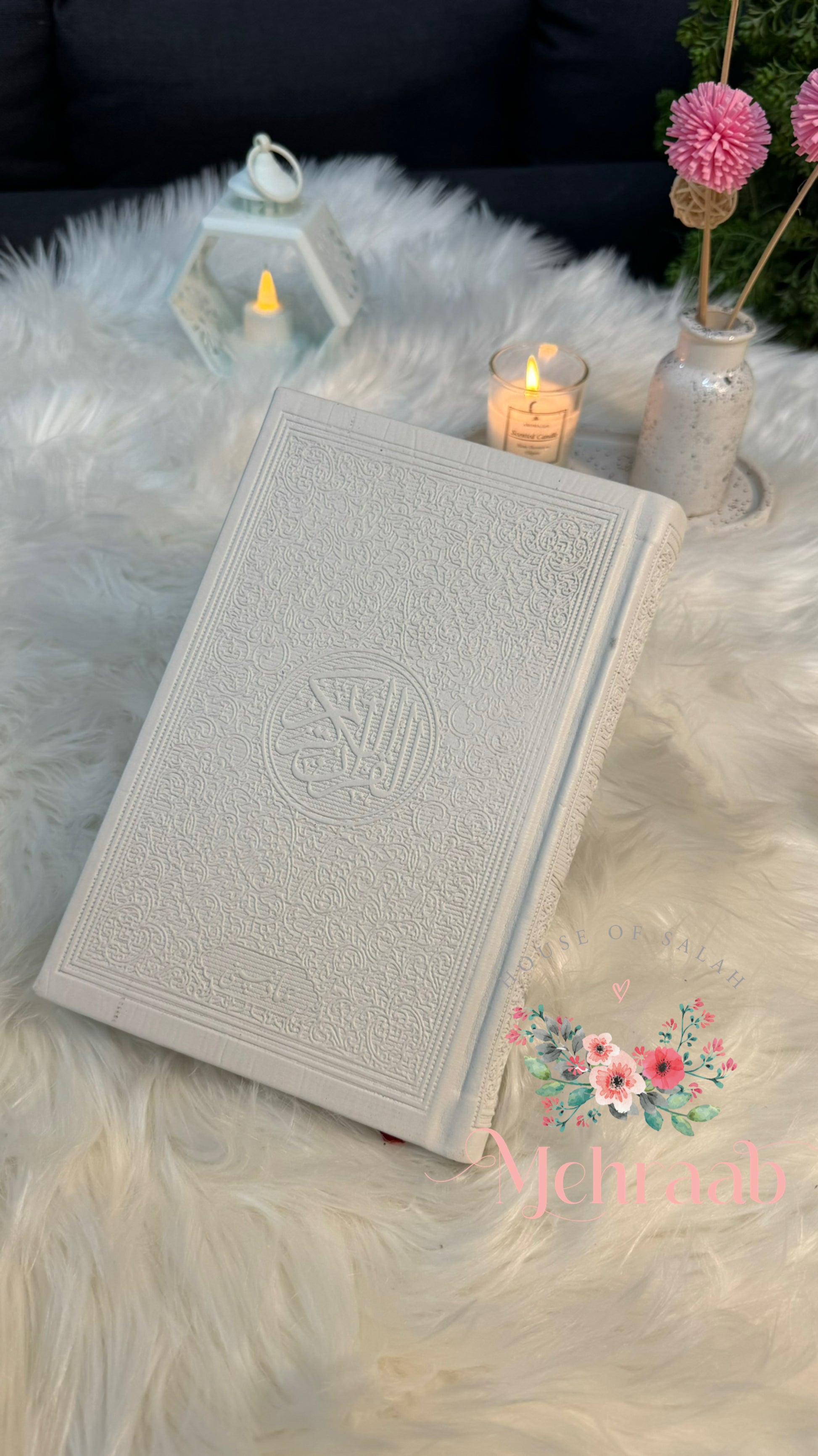 Crafted with premium quality pages and wrapped in vibrant leather covers, each Quran comes in a range of attractive rainbow colors that can be perfectly paired with our prayer mats and Rehal collections. The Tajweed rules are clearly highlighted, making it easier for recitation, fluency, and memorization.