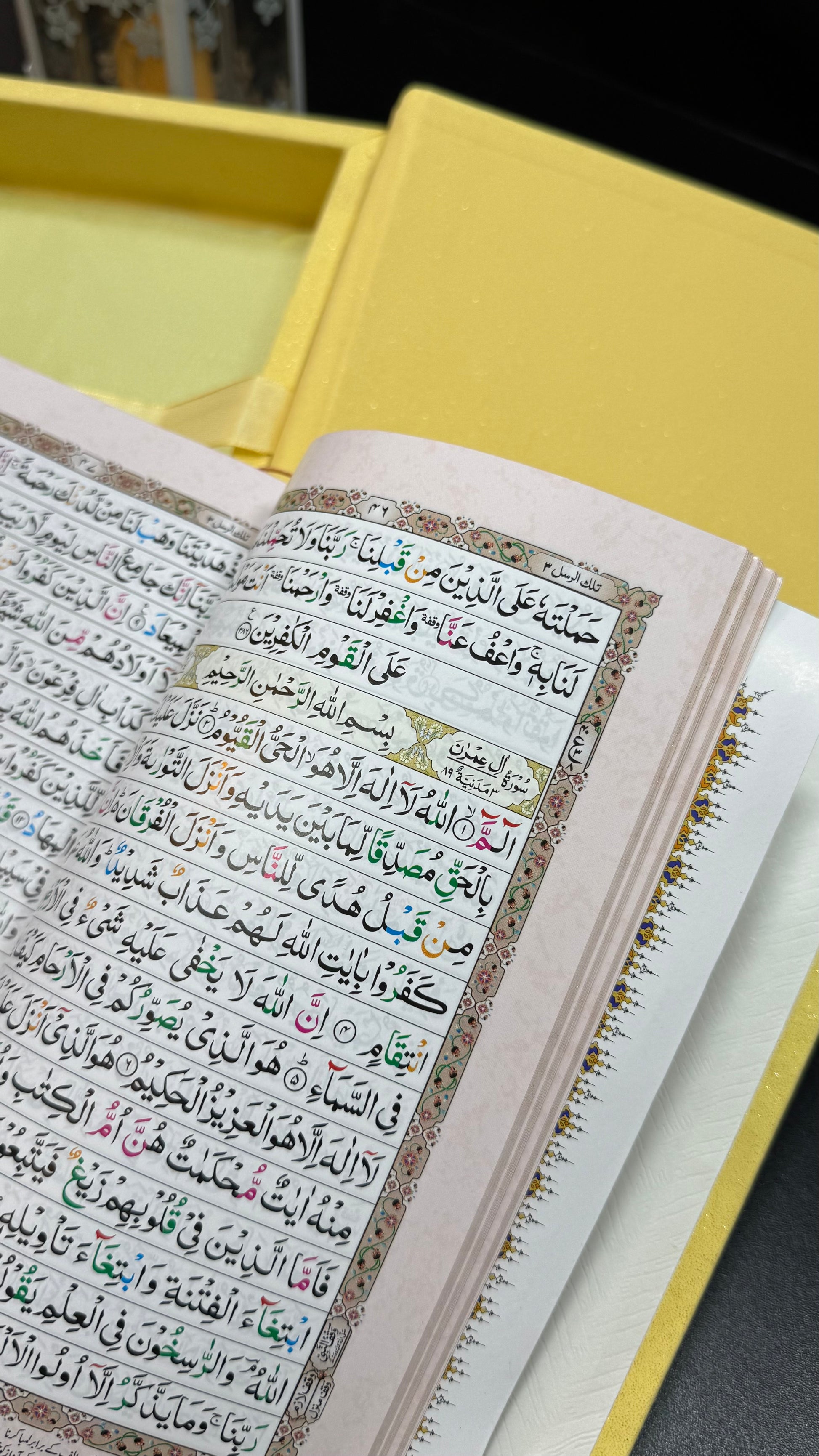 Each Quran comes in a glittery solid box, exuding elegance and making it a perfect Islamic gift for weddings, birthdays, Nikkah, Hajj/Umrah return, and housewarmings.