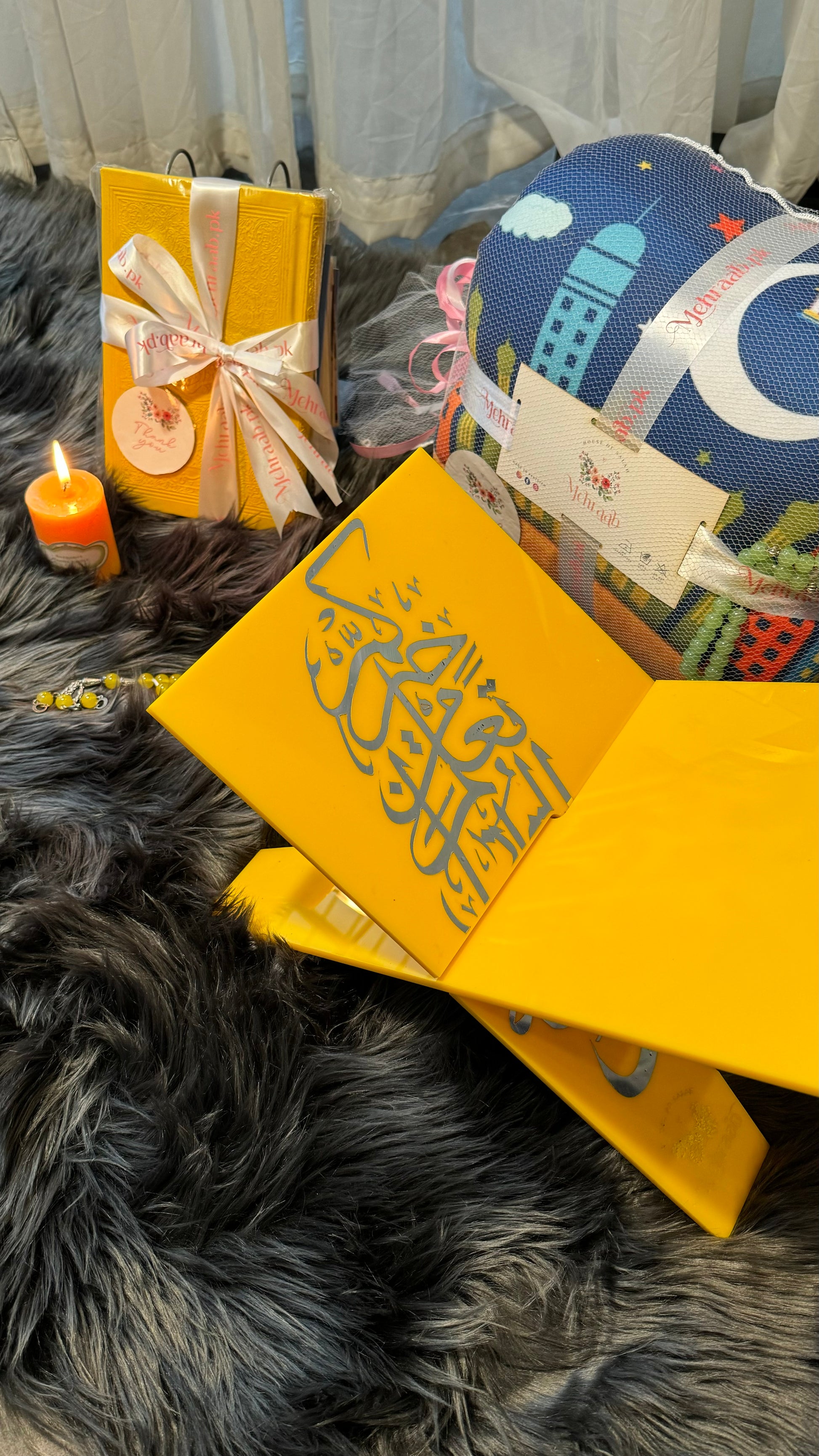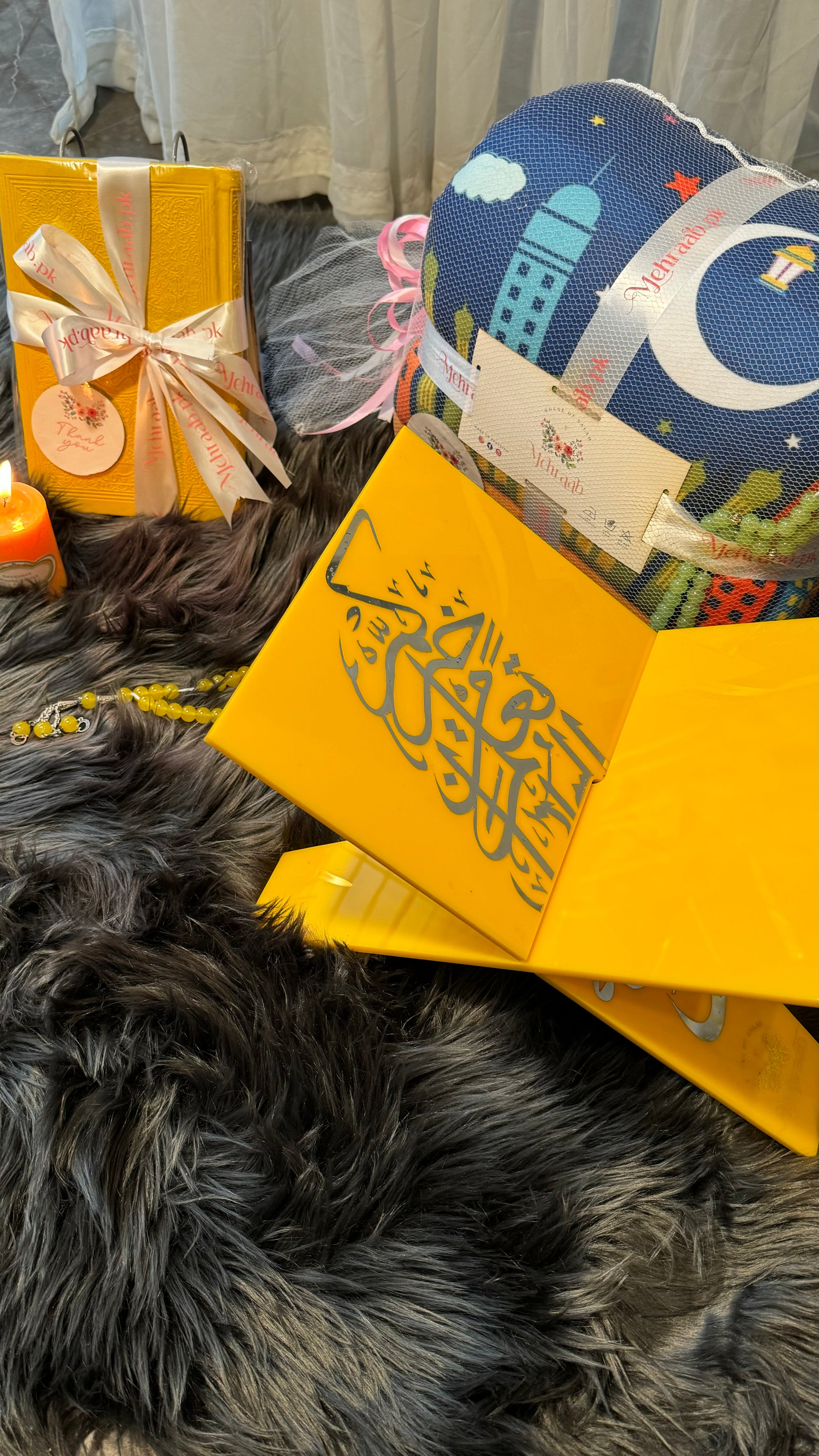 yellow Rehal! ππ Available in dimensions of 15*9 inches with a thickness of 6mm, each rehal comes in a beautiful box packaging. Perfect for personal use or as a thoughtful gift, this elegant and functional addition is sure to impress.